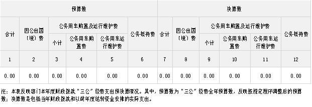 1.因公出国(境)费用全年预算数为0.00万元,支出决算为0.00万元,决算数与预算数相等。