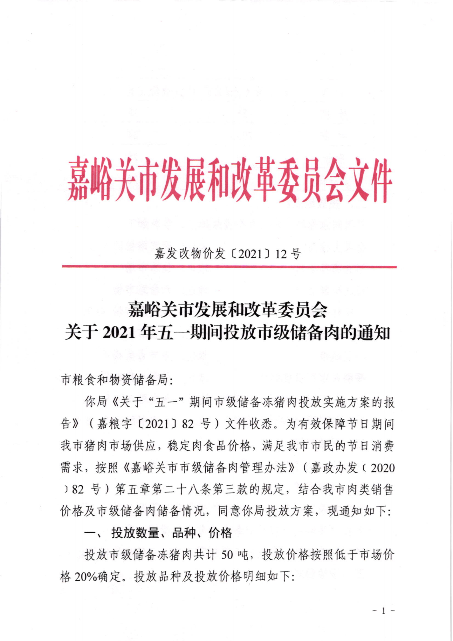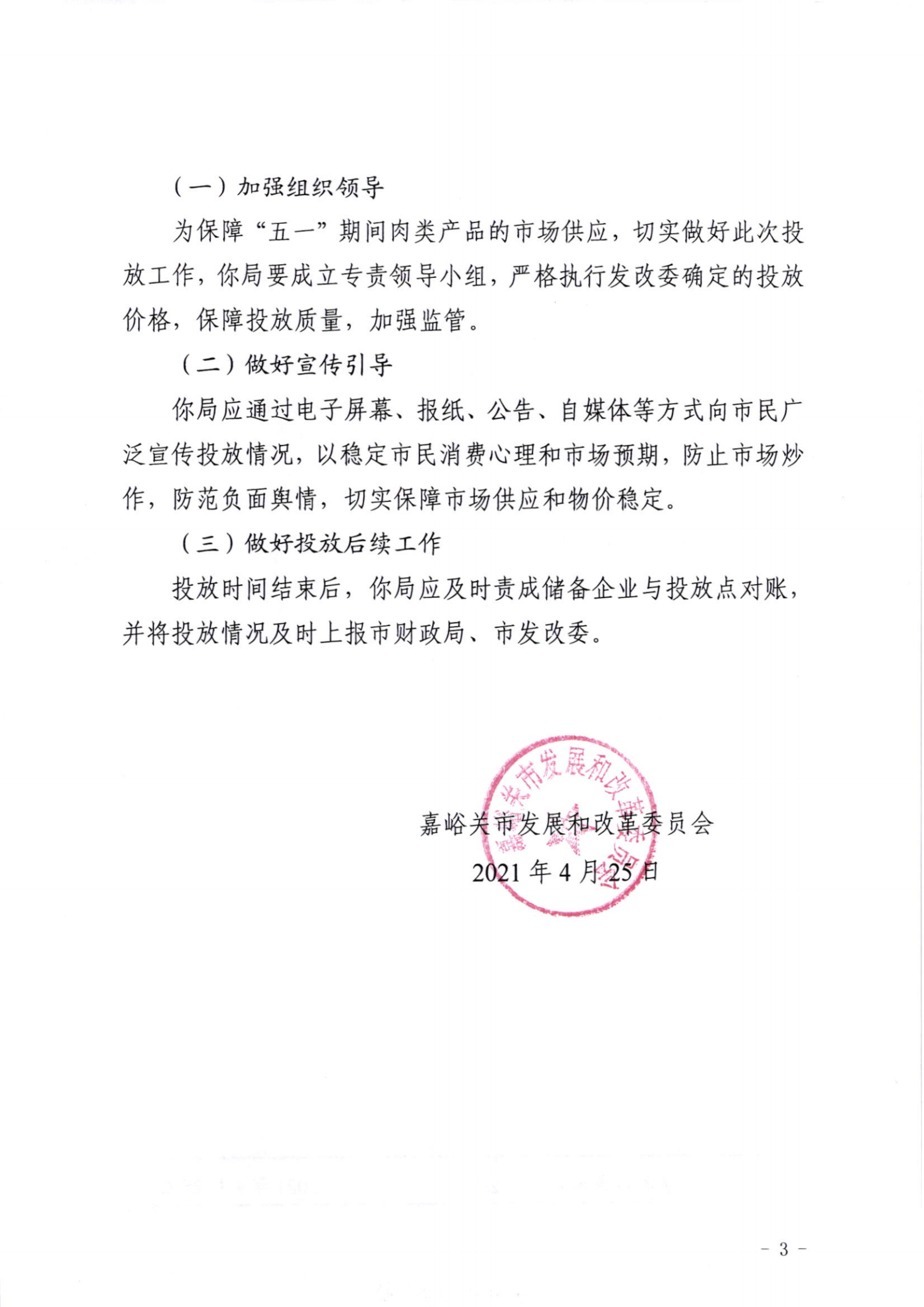 嘉峪关市发展和改革委员会关于2021年五一期间投放市级储备肉的通知