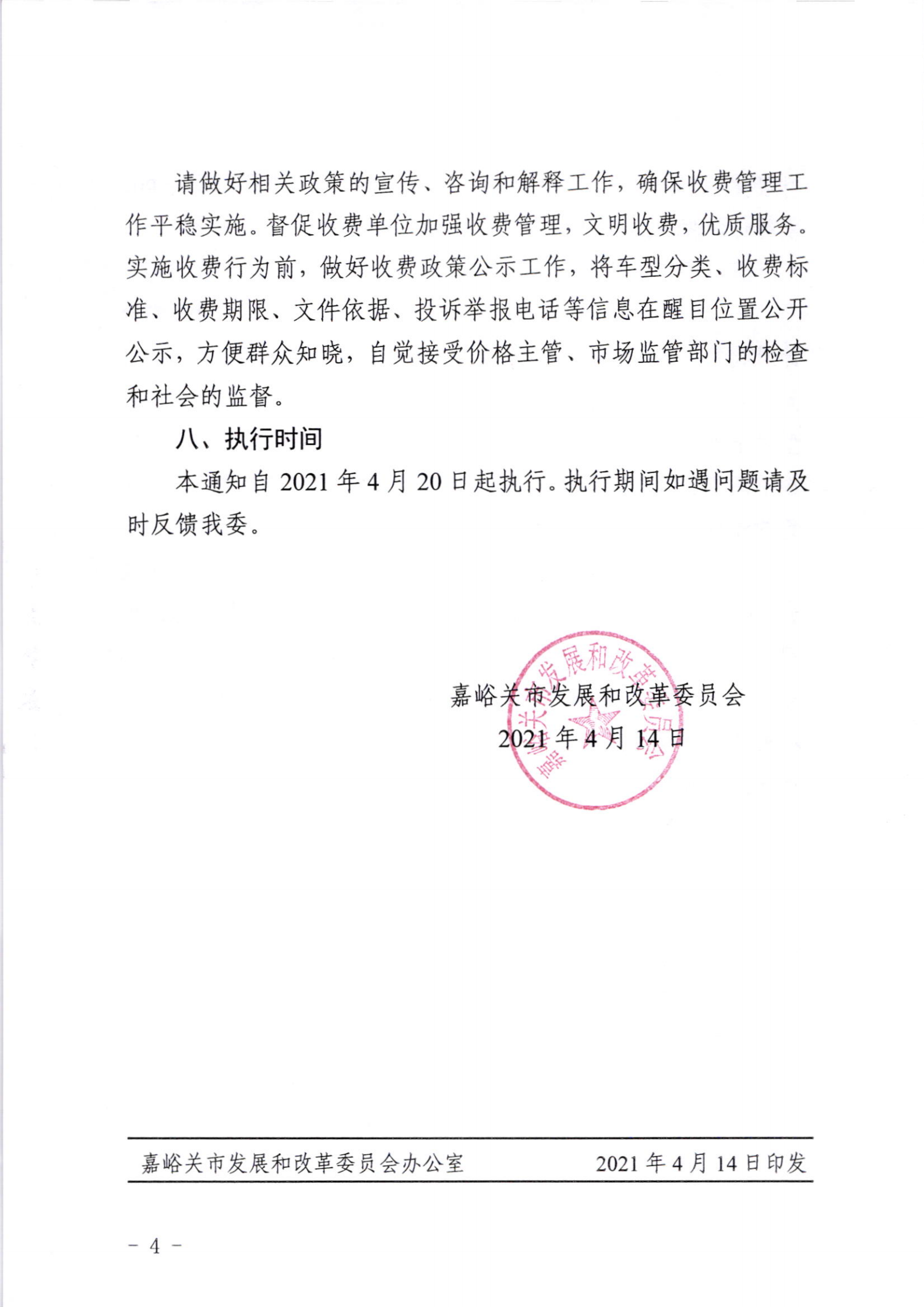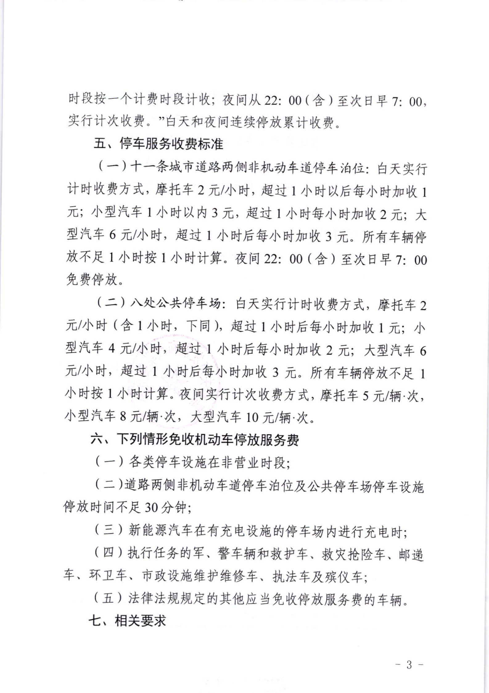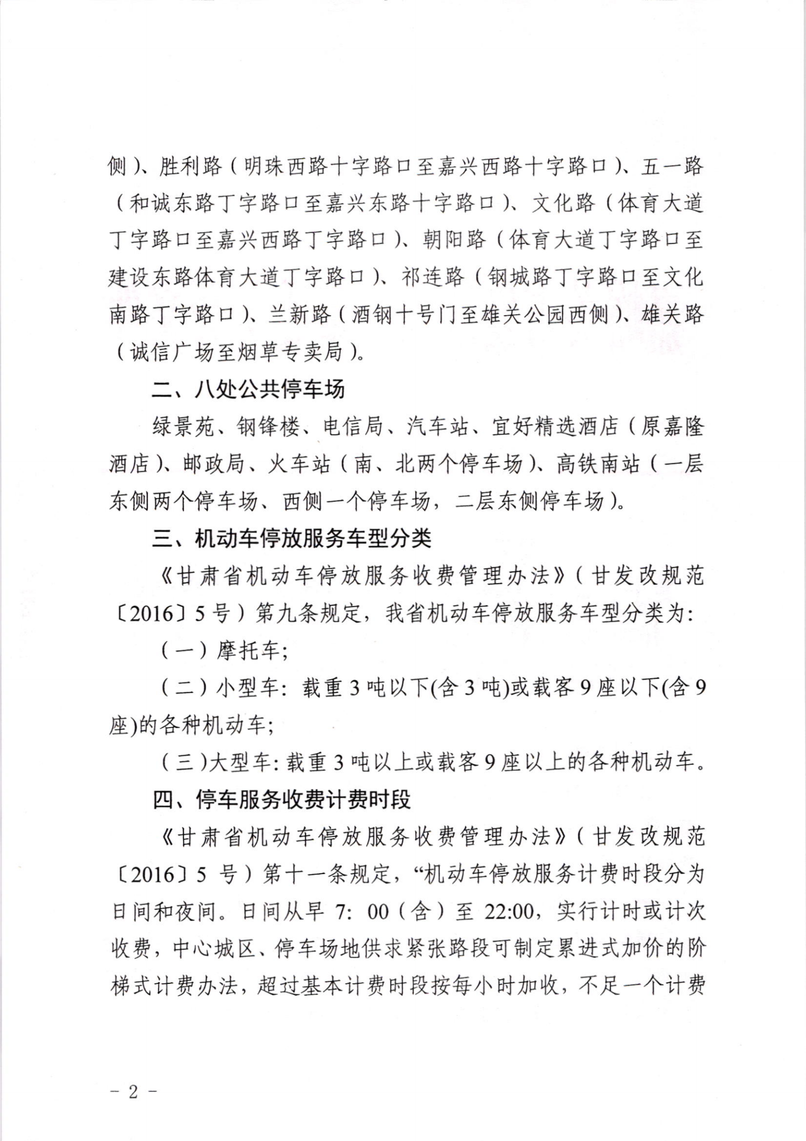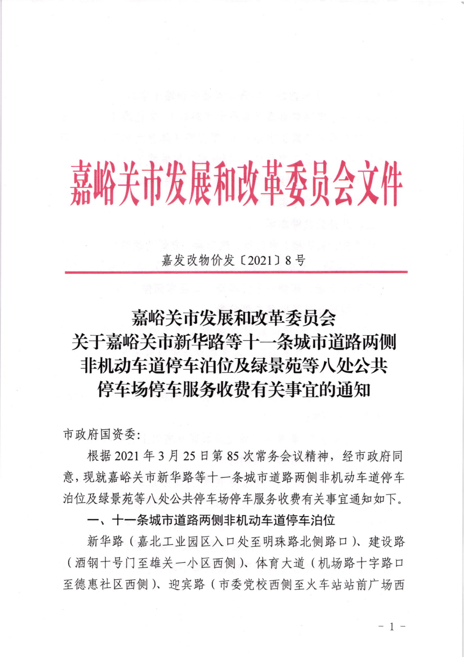 嘉峪关市发展和改革委员会关于嘉峪关市新华路等十一条城市道路两侧非机动车道停车泊位及绿景苑等八处公共停车场停车服务收费有关事宜的通知