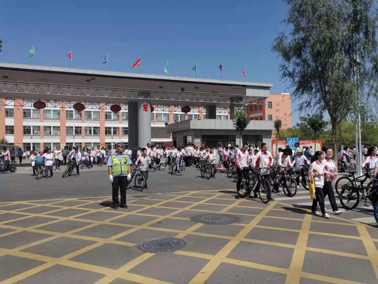 针对学校周边人流量多、车流量大等特点,在学校门口、师生必经十字路口处,科学布警、合理设岗,指挥疏导交通,引导车辆礼让行人,全力维护广大师生的出行安全。期间,充分利用学生上、下学时段向广大师生及家长宣传讲解道路交通安全知识,教育孩子们如何过马路、如何乘坐车辆,引导孩子们自觉遵守道路交通安全法律法规,杜绝闯红灯、横穿马路、不走斑马线等不文明的交通行为,有效改善了校园周边的道路交通环境。