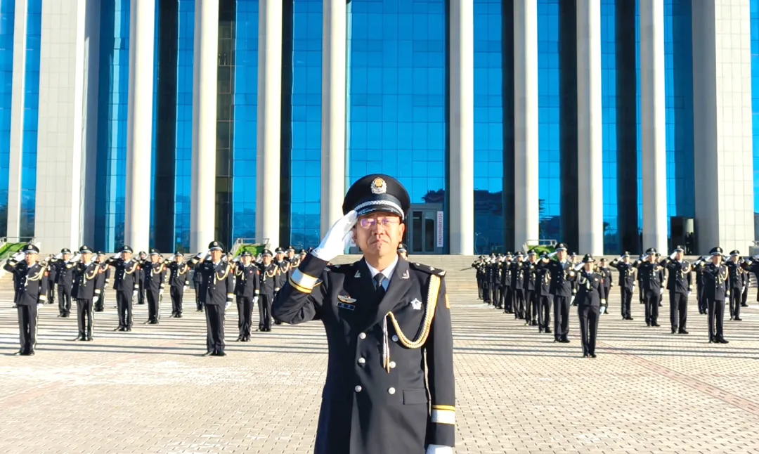 在庄严雄壮的国歌声中,鲜艳的五星红旗冉冉升起,全体民警警容严整、精神抖擞,面向国旗庄严敬礼,表达对祖国的无限热爱、无限忠诚。