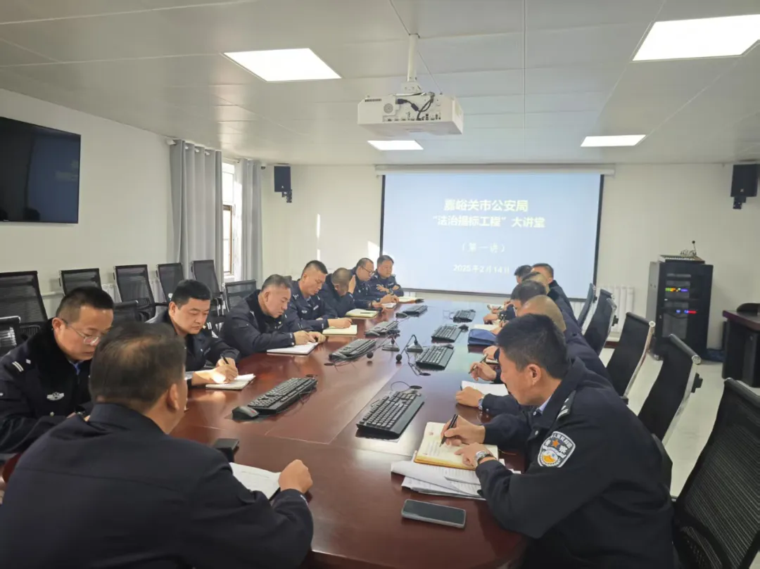 为全面贯彻落实《2025年全省“法治公安提标工程”实施方案》精神,深入推进嘉峪关“法治公安提标工程”走深走实,切实提升执法监督民警的法律素养和执法水平。2月14日,嘉峪关“法治公安提标工程”大讲堂第一讲开讲,全市公安机关法制民警和法制监督员参加培训。