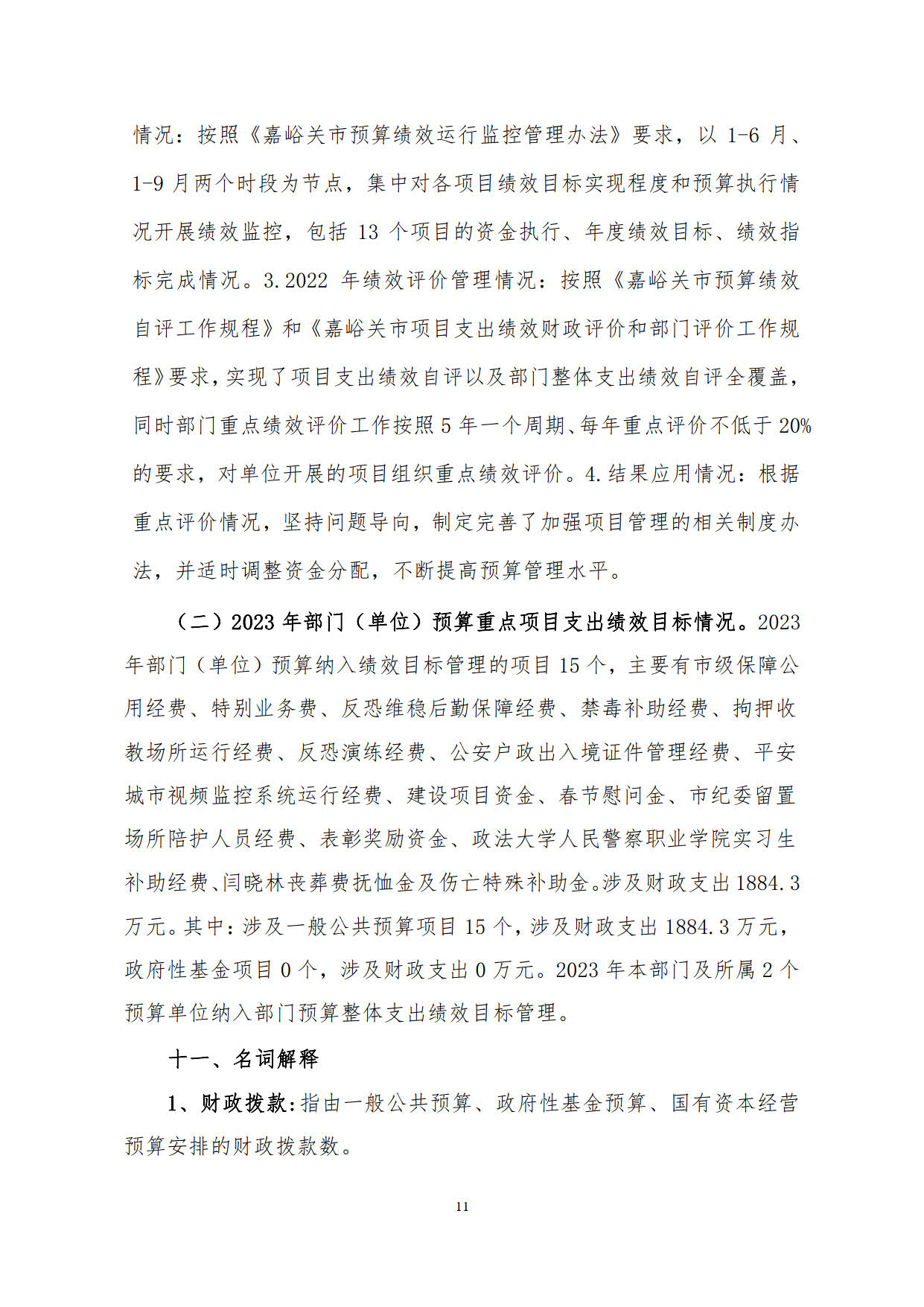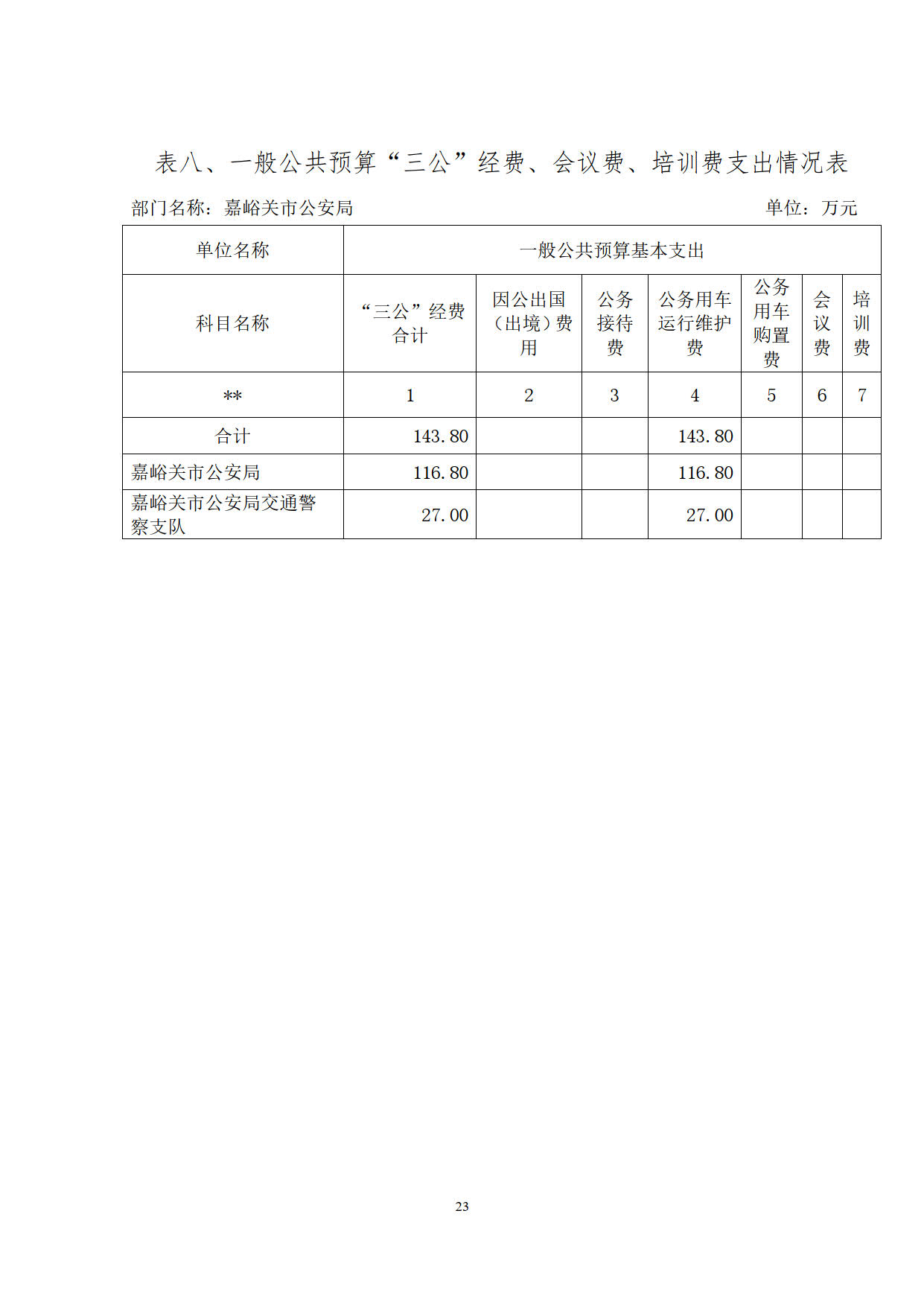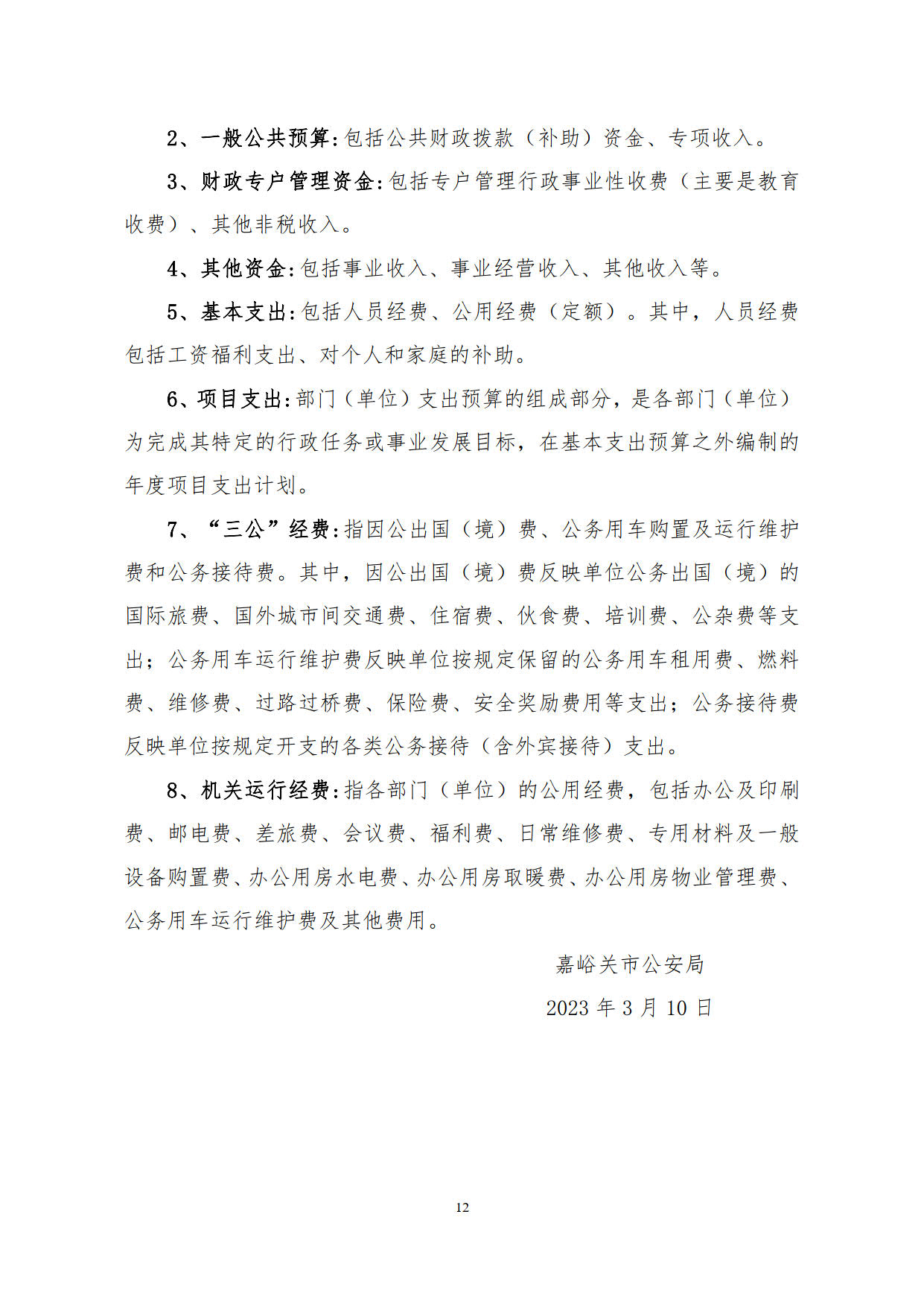 2023年嘉峪关市公安局汇总预算公开情况说明