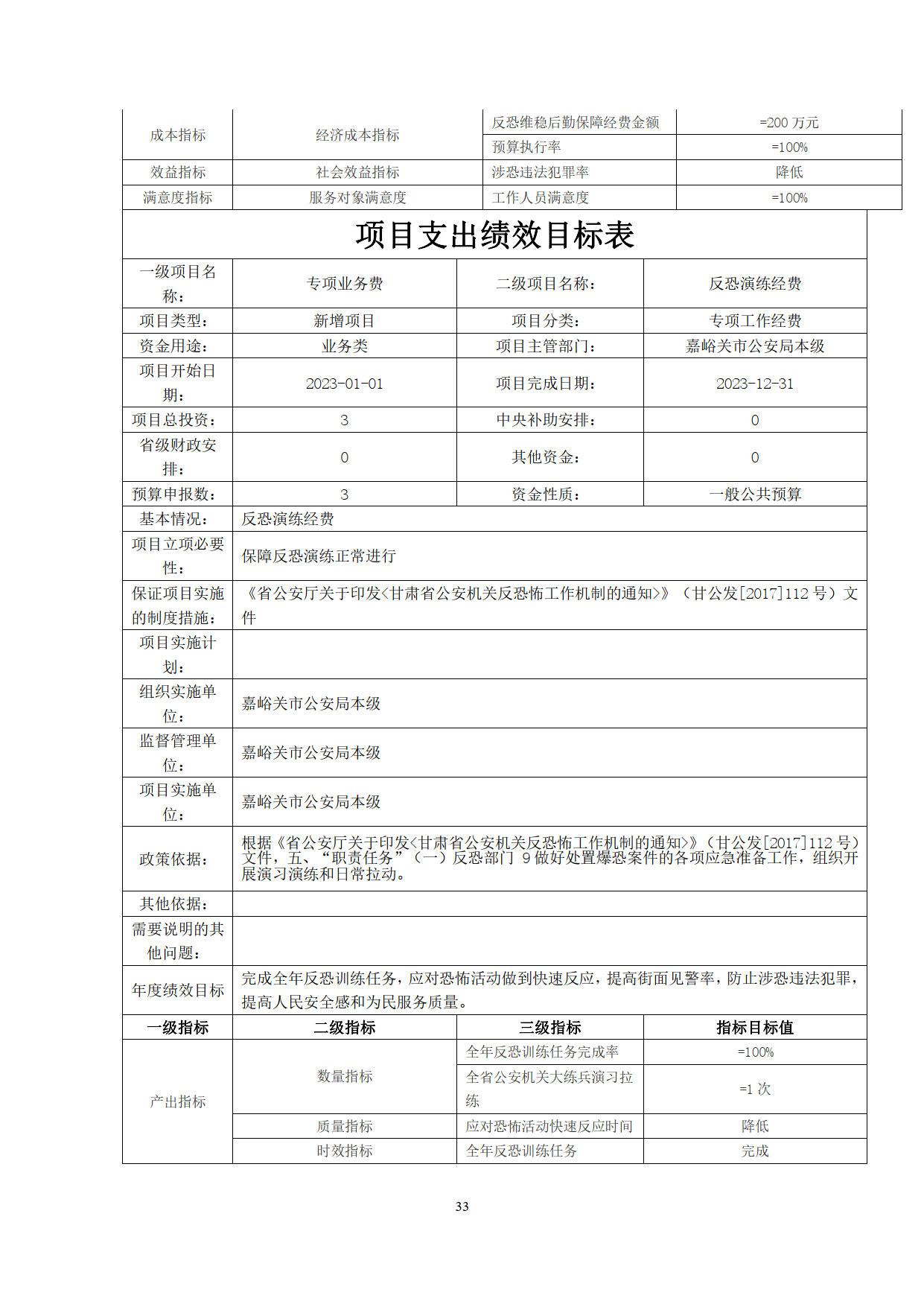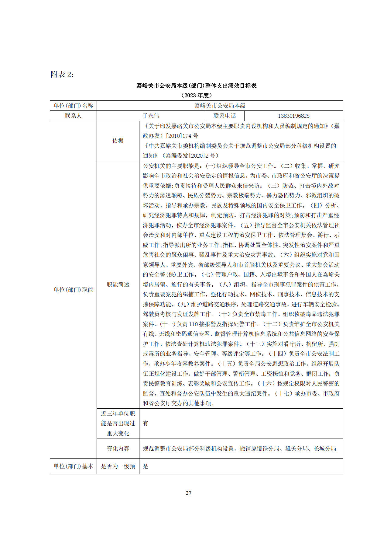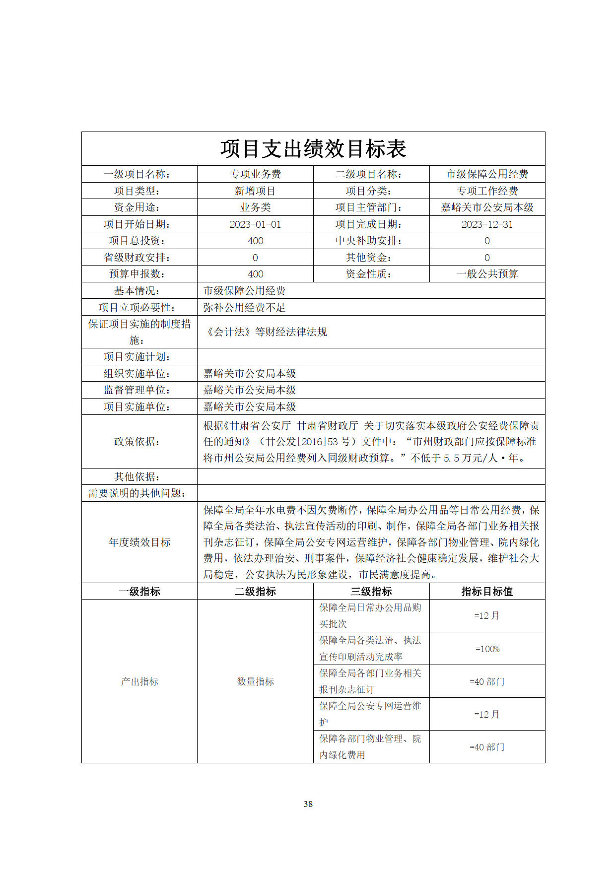 2023年嘉峪关市公安局汇总预算公开情况说明