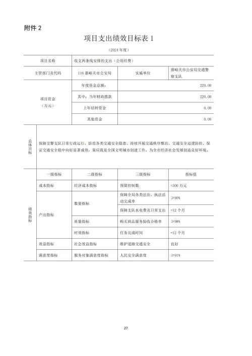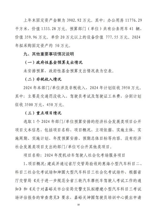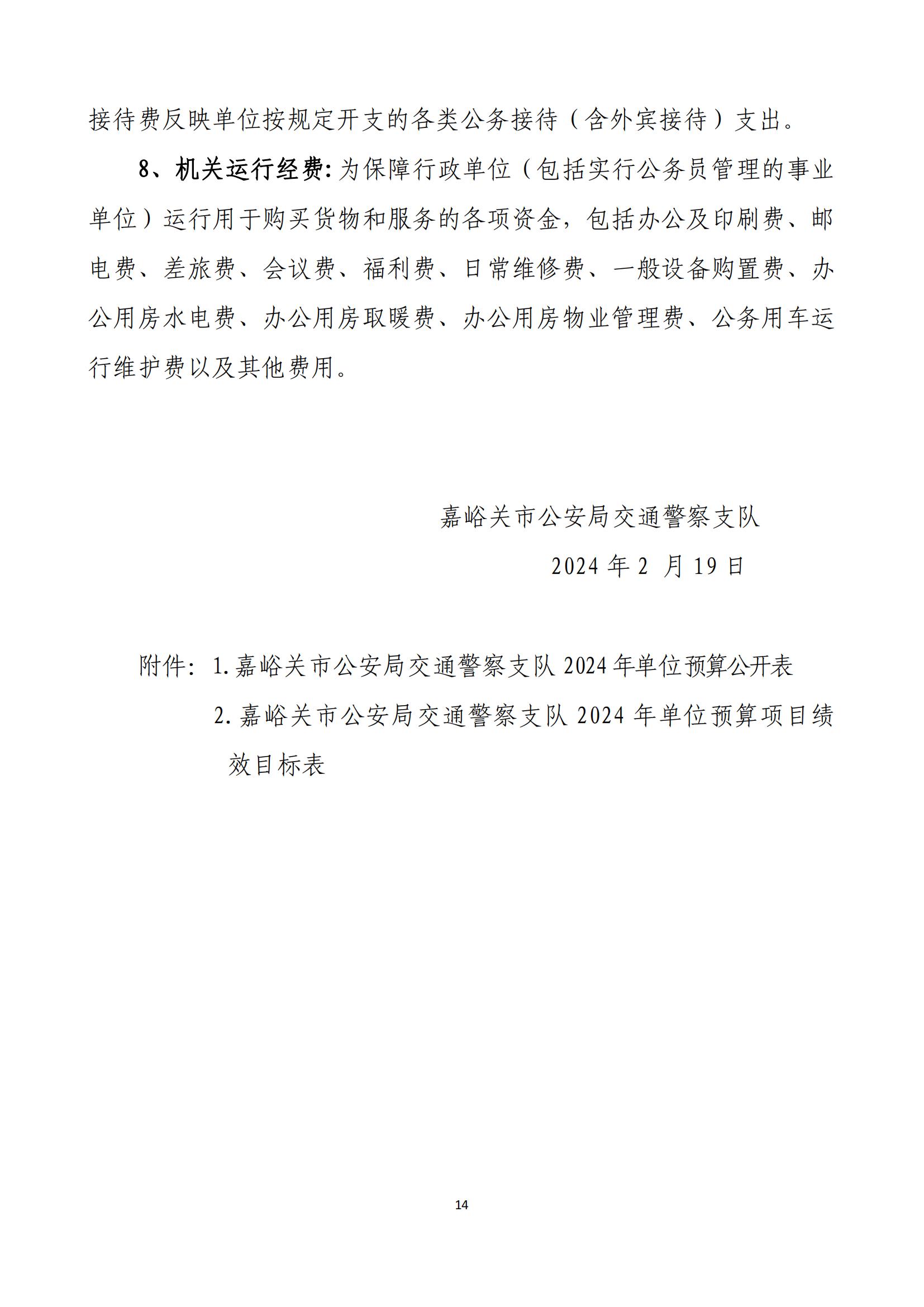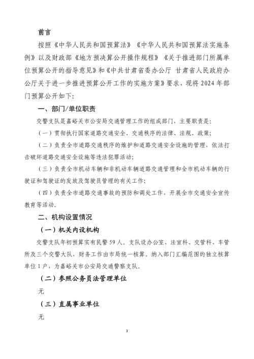 嘉峪关市公安局交警支队2024年单位预算公开情况说明