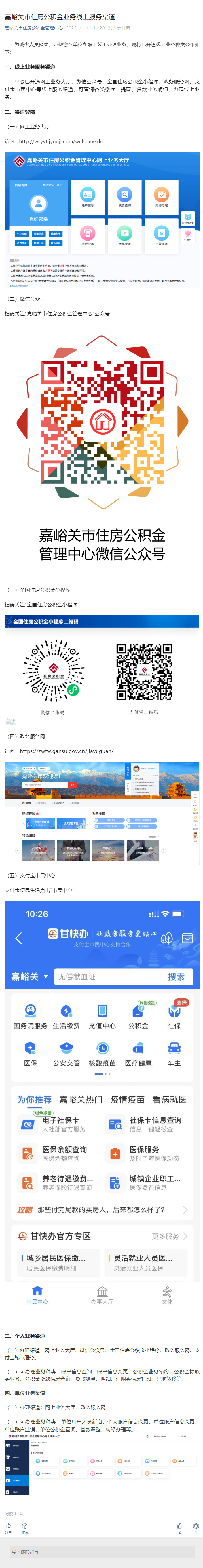 2022年第73期 嘉峪关市住房公积金业务线上服务渠道