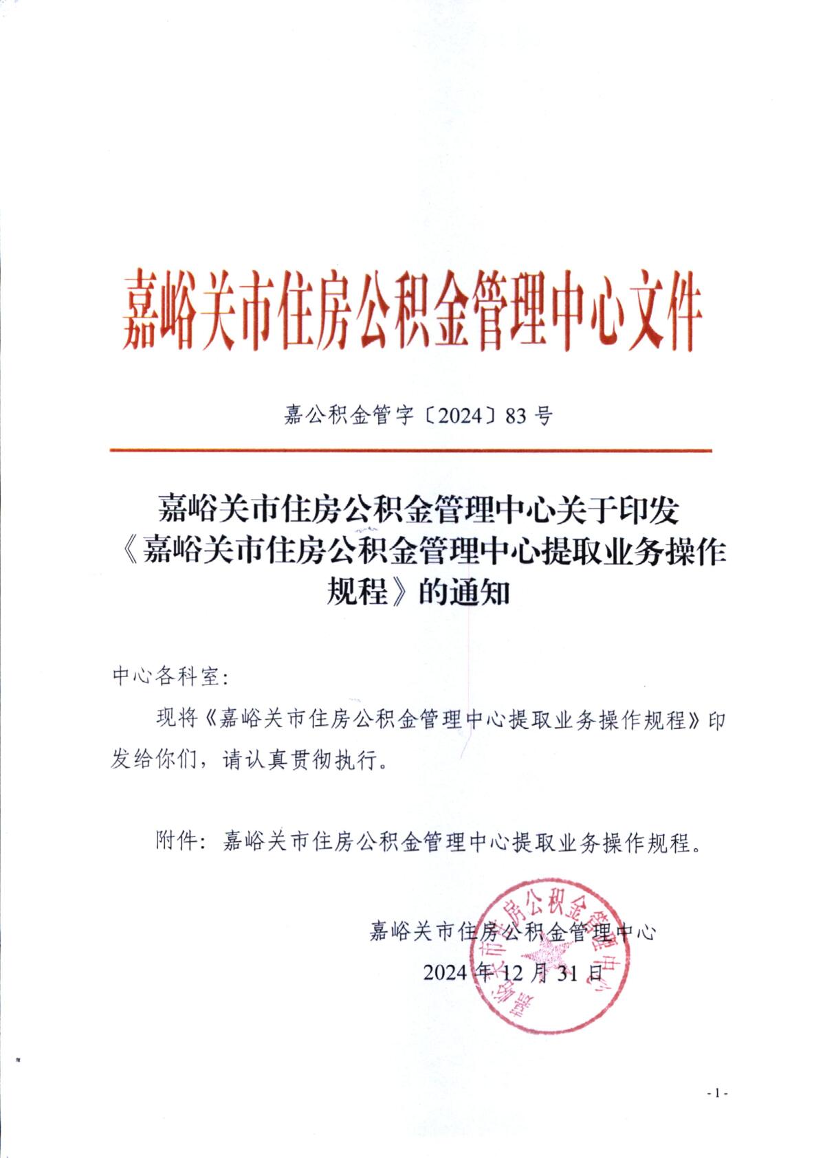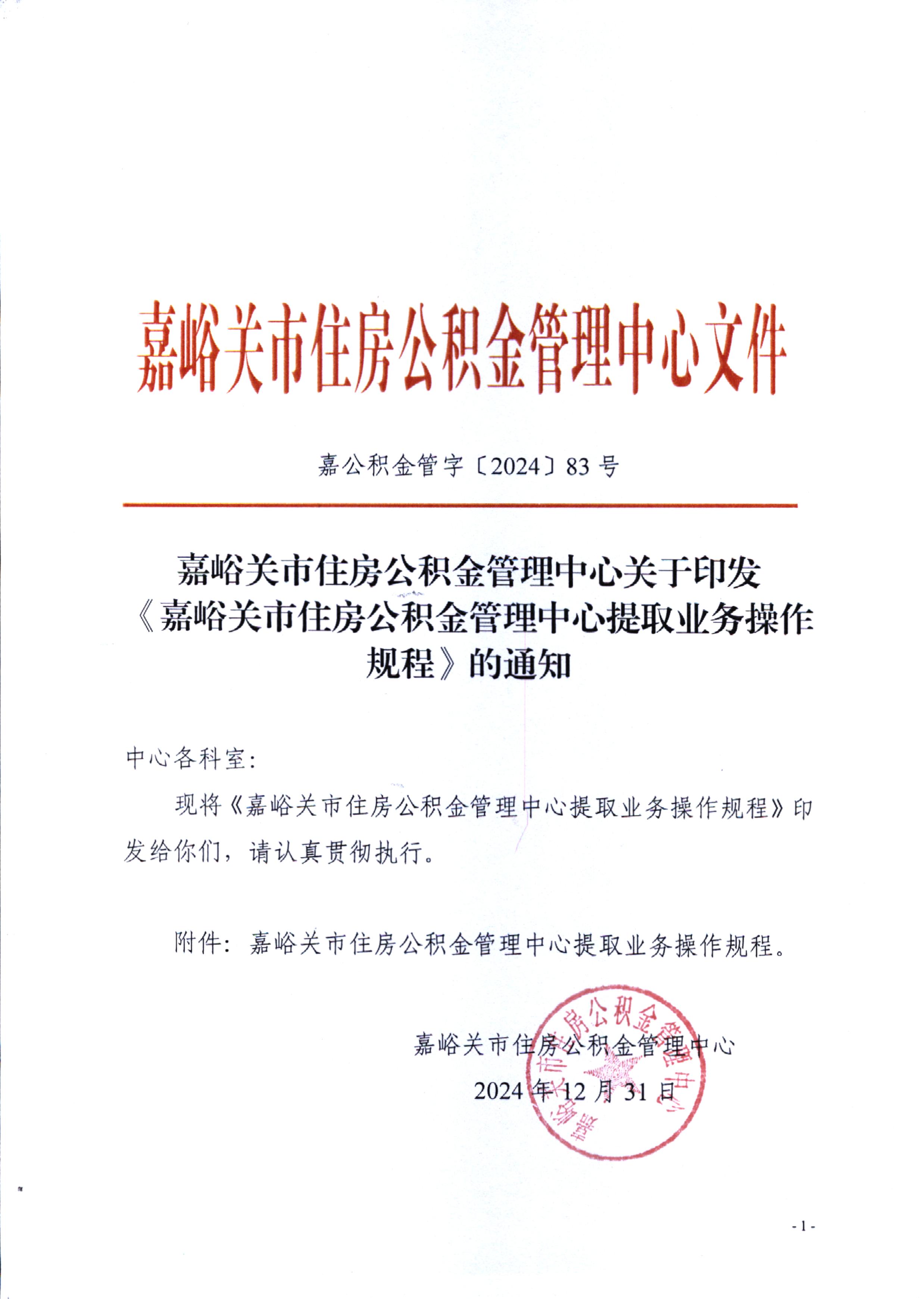 嘉峪关市住房公积金管理中心提取业务操作规程