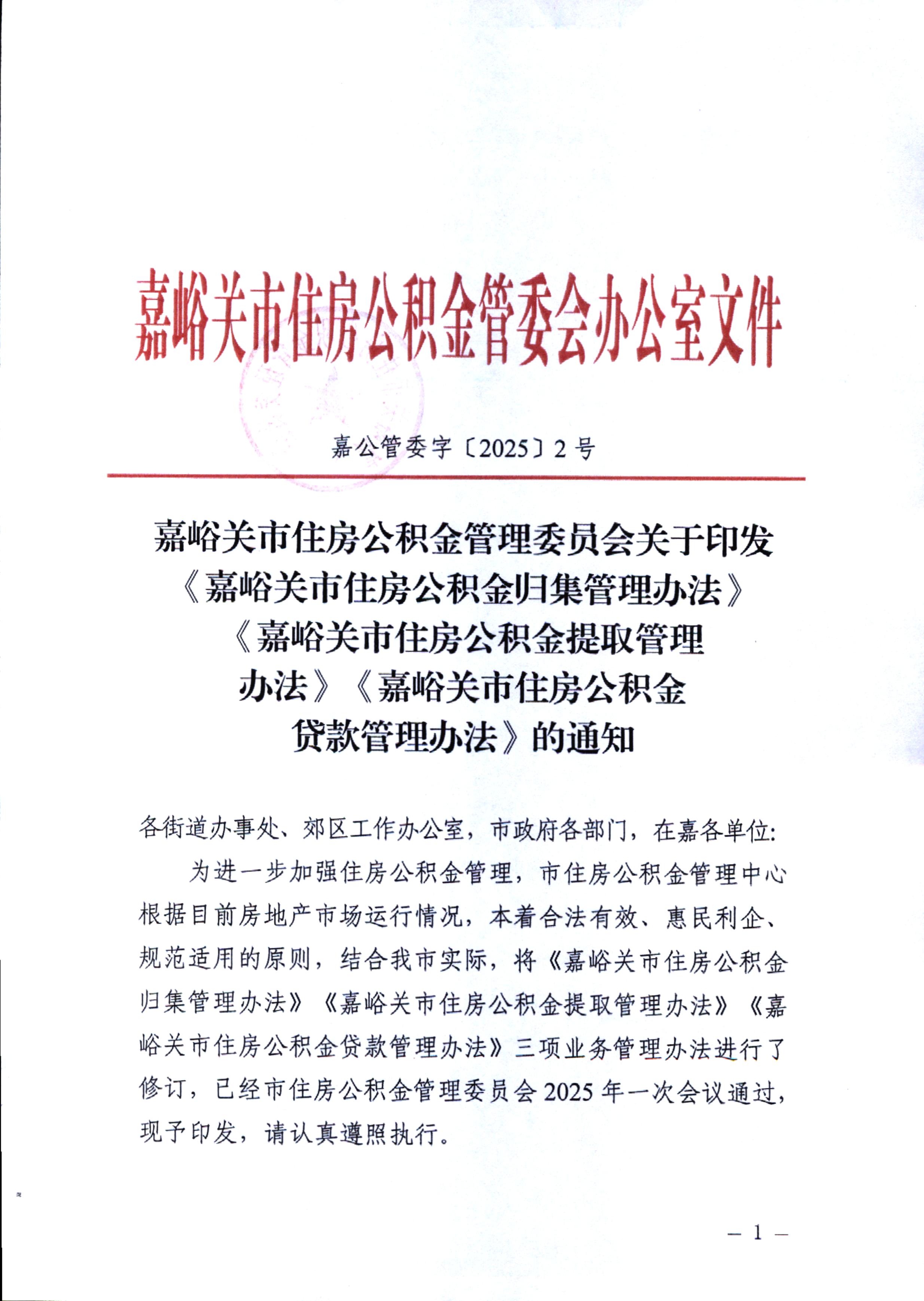 嘉峪关市住房公积金管理委员会关于印发《嘉峪关市住房公积金归集管理办法》《嘉峪关市住房公积金提取管理办法》《嘉峪关市住房公积金贷款管理办法》的通知