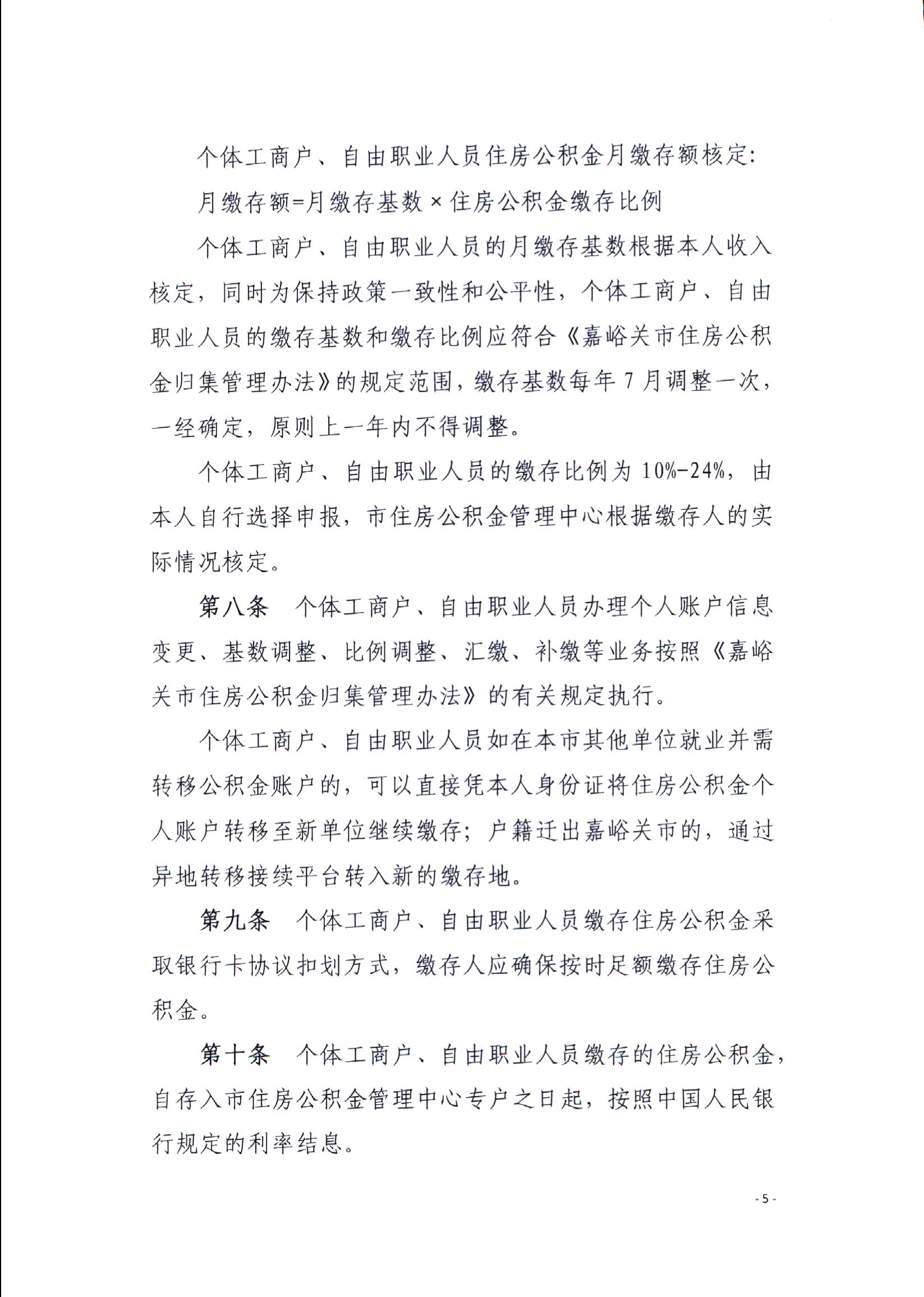 嘉峪关市住房公积金管理委员会关于印发《嘉峪关市城镇个体工商户、自由职业人员住房公积金管理办法》的通知