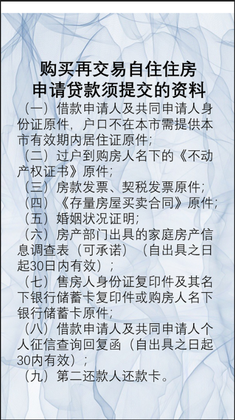 购买再交易自住住房申请贷款须提交的资料