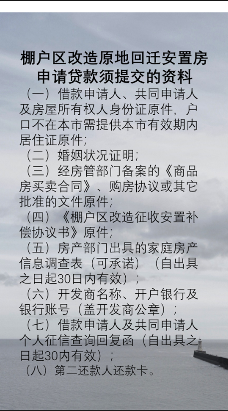 棚户区改造原地回迁安置房申请贷款须提交的资料