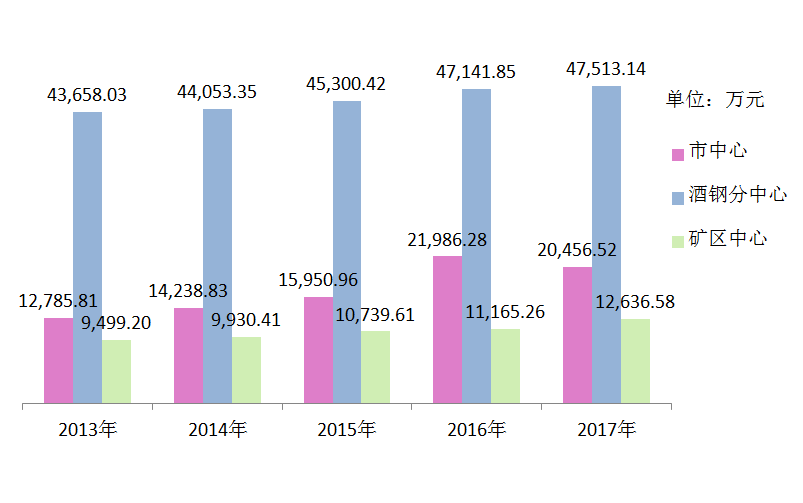 (一)业务收入:2017年,业务收入8886.36万元,同比下降8.23%。其中,市中心2343.13万元,酒钢分中心5328.25万元,矿区中心1214.98万元;存款利息6747.46万元,委托贷款利息2138.85万元,其他0.05万元。