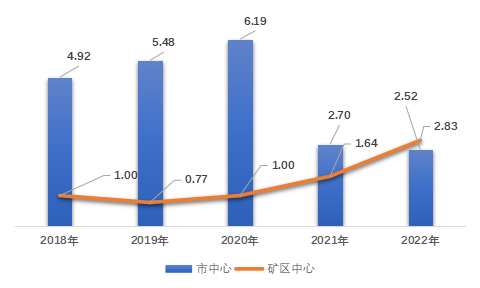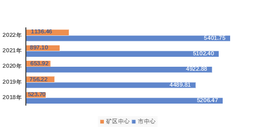 2022年,增值收益6538.21万元,同比增长8.98%。其中,市中心5401.75万元,矿区中心1136.46万元;增值收益率1.66%,比上年减少0.02个百分点。