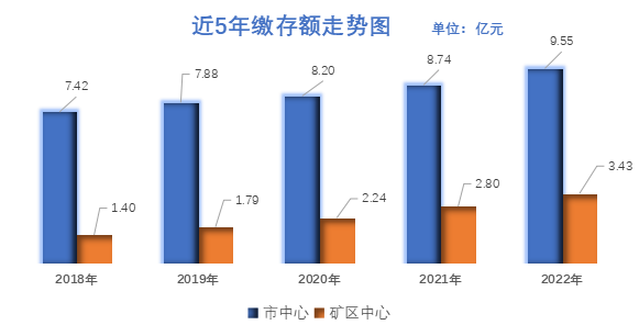 ---贷款发放保持平稳,支持职工基本住房消费。《年度报告》披露,2022年,发放个人住房贷款0.16万笔5.35亿元,贷款发放笔数与上年持平,贷款发放金额同比增长23.27%。其中,市中心发放个人住房贷款0.10万笔2.52亿元,矿区中心发放个人住房贷款0.06万笔2.83亿元。