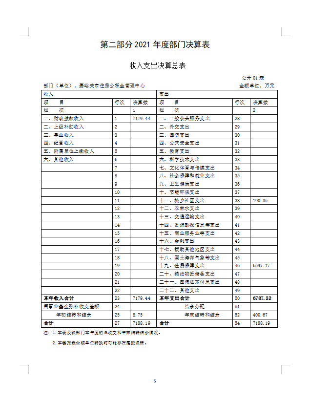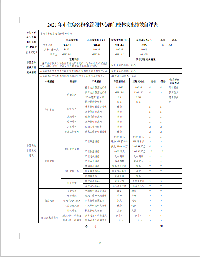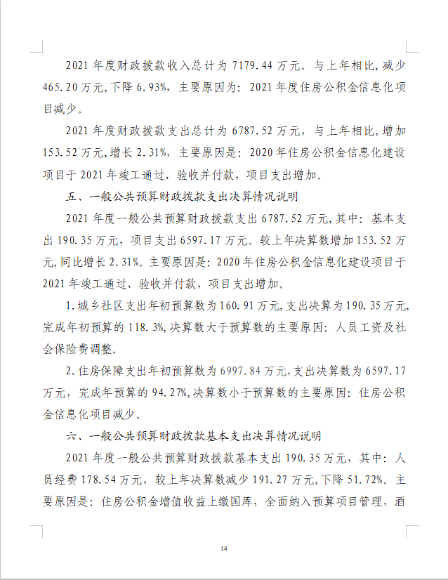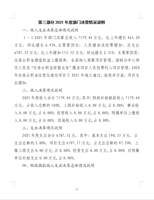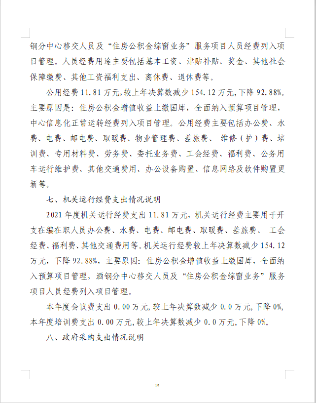 2021年度嘉峪关市住房公积金管理中心部门决算公开的情况说明