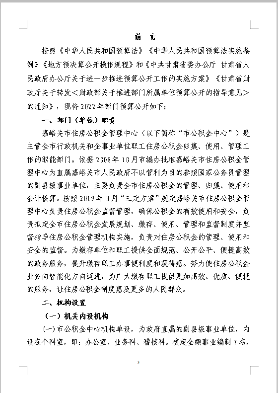 嘉峪关市住房公积金管理中心2022年部门预算信息公开情况说明