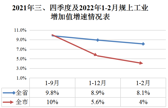 2月,规上企业完成工业总产值86.6亿元,同比增长35.7%;实现工业增加值15.13亿元,同比增长8.9%。1-2月,规上企业完成工业总产值172.7亿元,同比增长27.4%;实现工业增加值30.5亿元,同比增长4%,位列全省第12位,较同期增幅下降16.5个百分点。其中,地方规上企业累计完成工业总产值62.7亿元,同比增长34.8%,实现工业增加值10.72亿元,同比增长5.2%。
