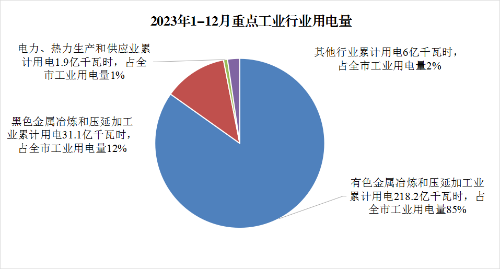 从要素保障看,先行指标趋于平稳。1-12月,全市工业用电量257.2亿千瓦时(占全市用电量98.3%),同比增长0.44%。分行业看,黑色行业用电量31.1亿千瓦时,同比增长1.95%;有色行业用电量218.2亿千瓦时,同比增长0.13%;电力、热力生产和供应业用电量1.9亿千瓦时,同比下降4.7%;非金属矿物制品业用电量2.2亿千瓦时,同比增长33.7%。全市天然气供应量1.77亿元立方米,其中,工业用气量为1.47亿立方米。全市工业企业贷款余额380.11亿元,同比增长9.71%,其中,中小微企业贷款余额57.31亿元,同比增长16.73%。