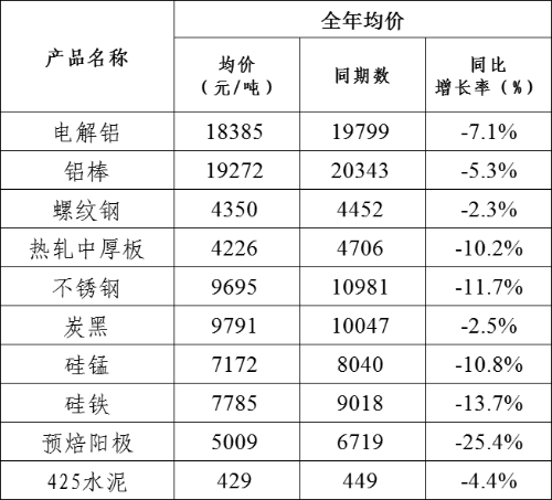从产品价格看,重点产品均价低于去年。重点监控的10种产品均价均比2022年同比下降,其中预焙阳极均价降幅超过20%,硅铁、硅锰、不锈钢、热轧中厚板4种产品均价降幅超过10%。