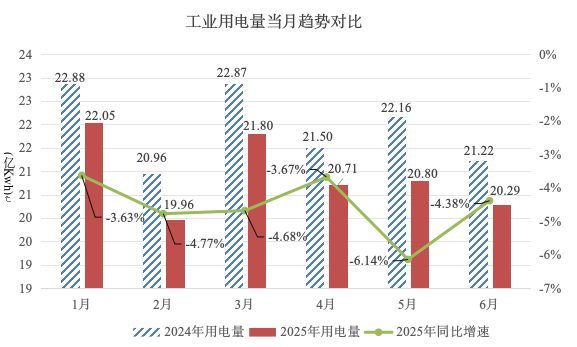 工业用电量同比下降。上半年,全市工业用电量125.6亿千瓦时(占全省20%),同比下降4.52%。其中,6月当月工业用电量20.29亿千瓦时,同比下降4.37%,降幅比5月份收窄1.76个百分点。上半年,全市完成发电量121.23亿千瓦时,同比增长12.48%;其中新能源发电量8.19亿千瓦时,同比下降11.73%。工业用气量为7306万立方米,同比增长11%。截止6月底,工业企业贷款余额465.56亿元,同比增长10.26%。其中,中小微企业贷款余额96.54亿元,同比增长18.96%。