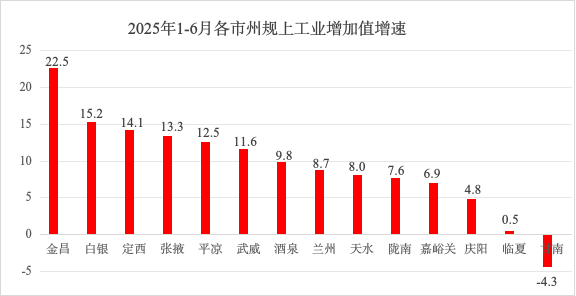 工业生产承压运行。上半年,面对螺纹钢等国际大宗产品价格剧烈波动,基建投资增速回落、建筑钢材消费量同比下降、市场需求不足等不利影响,以及酒钢集团2#高炉超低排改造、宏宇公司连铸和热轧线停产检修多重压力,规上工业企业承压运行,完成总产值696.5亿元,增长2.2%,增速较一季度(9.7%)回落7.5个百分点;增加值增长6.9%,增速较一季度(9.1%)回落2.2个百分点,排名全省第11位。6月当月,完成总产值110.5亿元,同比下降5.2%;增加值增长5%,增速较5月提升2.7个百分点。