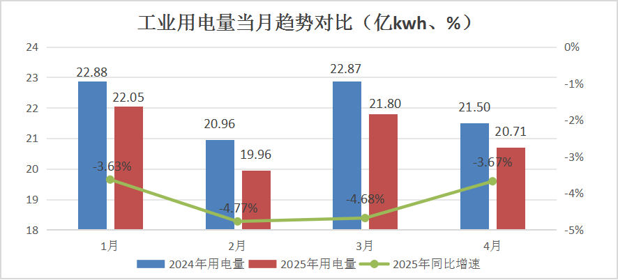工业用电量同比下降。1-4月,工业用电量84.54亿千瓦时(占全省20%),同比下降4.16%。其中,4月当月工业用电量20.7亿千瓦时,同比下降3.6%,降幅比3月收窄了1.1个百分点。1-4月全市完成发电量79.82亿千瓦时,同比增长9.44%。工业用气量为5411万立方米,同比增长20.9%。截止4月底,工业企业贷款余额473.45亿元,同比增长11.73%。其中,中小微企业贷款余额96.2亿元,同比增长18.26%。