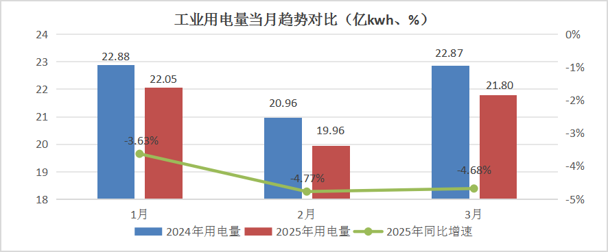 工业用电量持续下滑。一季度工业用电量63.83亿千瓦时(占全省20%),同比下降4.33%。其中,3月当月工业用电量21.8亿千瓦时,同比下降4.7%,降幅比2月收窄了0.09个百分点,比1月扩大了1.05个百分点。3月全市完成发电量59.5亿千瓦时,同比增长7.2%。工业用气量为4440万立方米,同比下降3.4%。截止3月底,工业企业贷款余额484.23亿元,同比增长11.97%。其中,中小微企业贷款余额96.57亿元,同比增长24.74%。