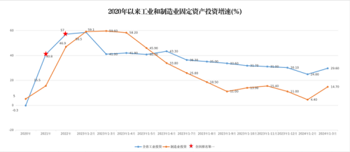 1-3月,全省工业固定资产投资同比增长29.6%,增幅较上年同期回落11.4个百分点,较2024年1-2月提高4.8个百分点。