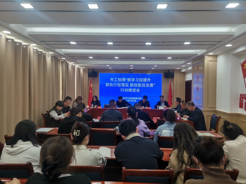 (王嘉雪)3月9日,市工信局召开了“抓学习促提升、抓执行促落实、抓效能促发展”行动推进会议。会上通报了1—2月份全市工业运行、中小微企业发展、工业固定资产投资完成情况,传达学习了政府办《关于印发<政府系统深入开展“抓学习促提升抓执行促落实抓效能促发展”行动工作计划>的通知》精神,对《市工信局“抓学习促提升抓执行促落实抓效能促发展”行动方案》的落实工作进行再安排、再部署。局党组书记、局长朱自虎同志主持会议。