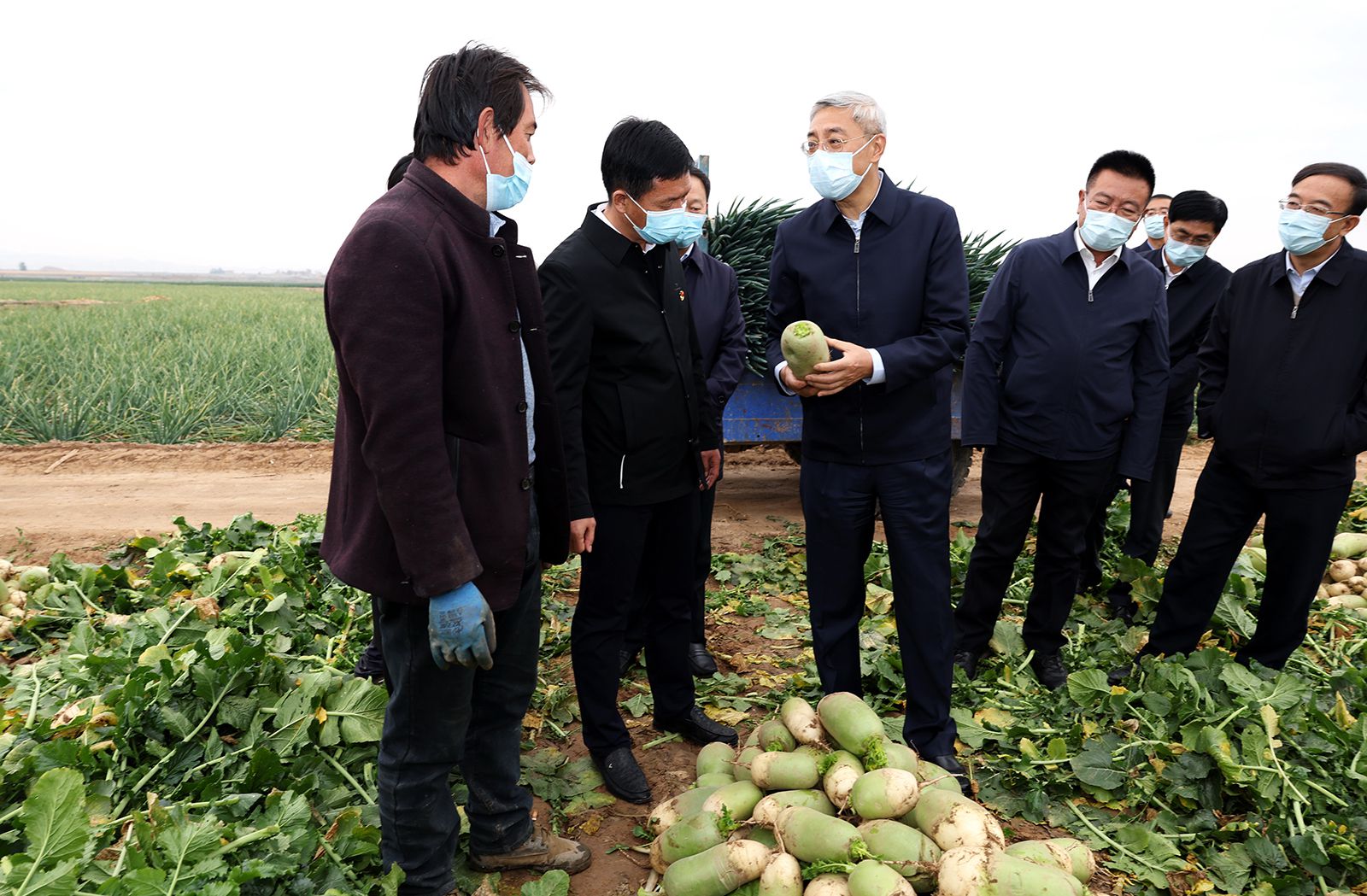 在靖远县乌兰镇红嘴村,尹弘走进田间地头,与正在采收蔬菜的农民亲切交谈,详细询问今年收成与收入情况,认真倾听农民心声。他强调,要深刻领会全面建设社会主义现代化国家、最艰巨最繁重的任务仍然在农村,坚持农业农村优先发展,全面推进乡村振兴,培育壮大特色产业,千方百计促进农民群众稳定增收。在红嘴村便民服务中心,尹弘叮嘱干部要多到农户家中走一走,多和群众聊一聊家长里短,深入了解群众的需求诉求,及时帮助化解难题、解决矛盾,让农民生活和谐幸福、日子热气腾腾。要高度关注“一老一小”和低收入等群体,他们最能触动群众心中最柔软的地方,考验着我们的公共服务和基层治理水平,一定要以“时时放心不下”的责任感,持续改进作风、提升能力、增强素质,解决好群众的急难愁盼问题,把群众口碑作为评价工作的标准。当前,要及早安排好过冬事宜,落实好各项保障政策,特别是关心好留守老人和儿童,确保大家安全温暖过冬。