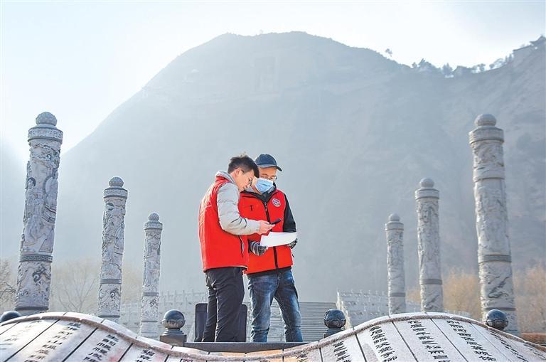 甘谷县普查员在大像山景区开展核查工作。(省应急管理厅供图)