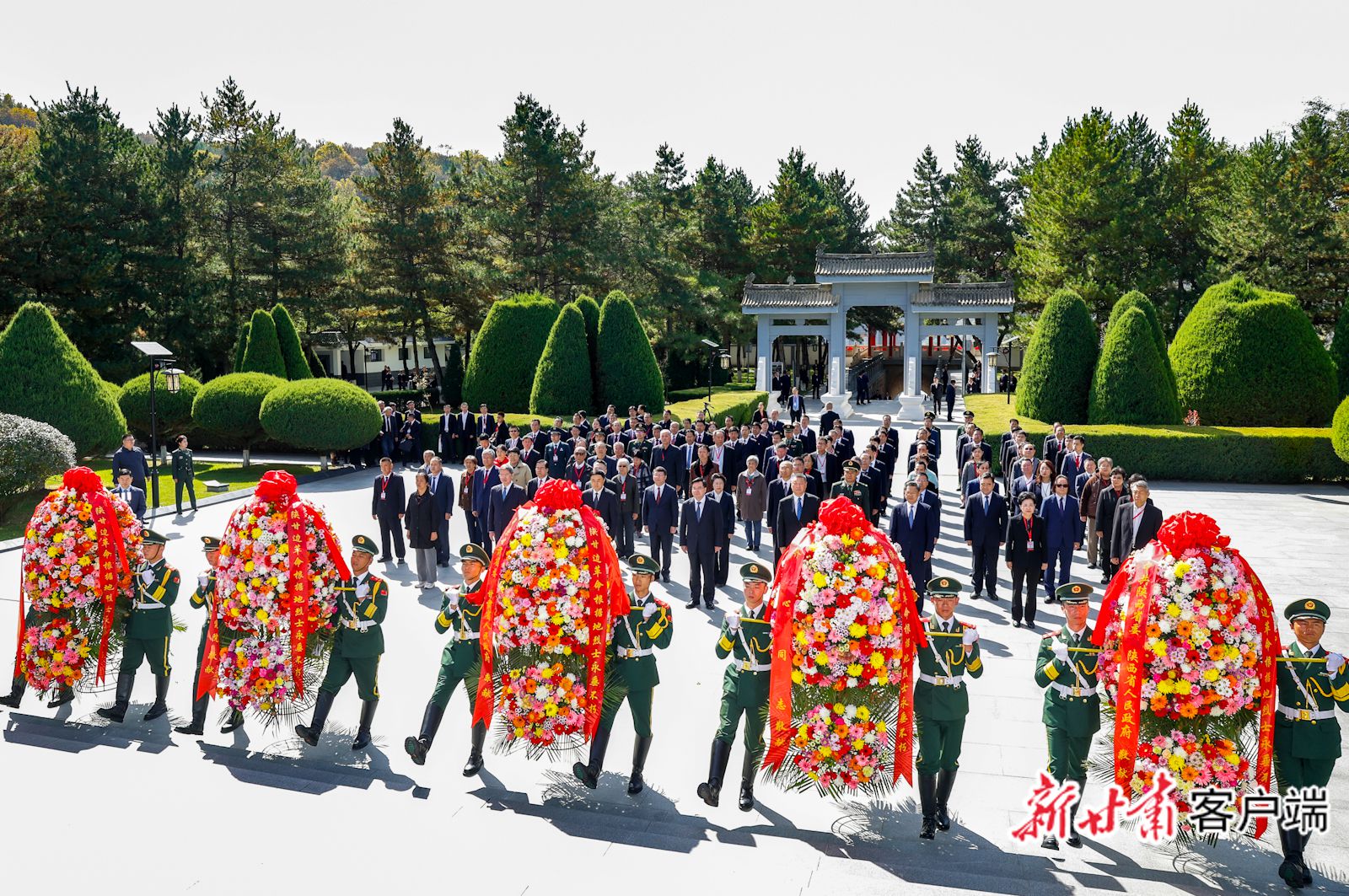 座谈会后,举行了向南梁革命烈士纪念碑敬献花篮仪式。