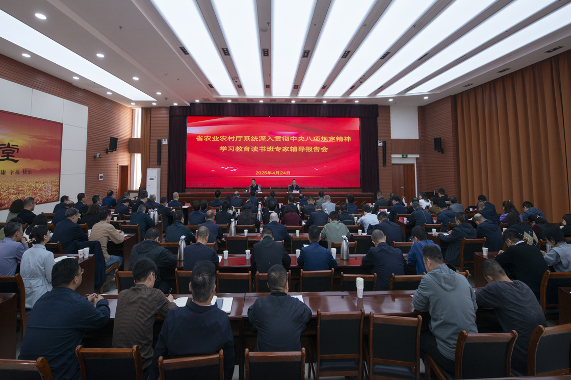 4月24日,省农业农村厅举办厅系统深入贯彻中央八项规定精神学习教育读书班专家辅导报告会,邀请省信访督查专员、省纪委监委专家库成员富鹤亭同志作专题辅导。厅党组成员、省纪委监委派驻省农业农村厅纪检监察组组长王宏斌主持并讲话。