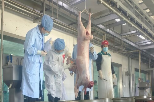 本次竞赛分为理论考试和现场技能操作考核两部分。理论考试主要考核《中华人民共和国动物防疫法》《动物检疫管理办法》等相关法律法规等。实操环节重点考查羊屠宰同步检疫,包括头蹄、胃肠脾、肺心肝、胴体和生殖系统等检疫岗位的操作。