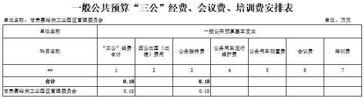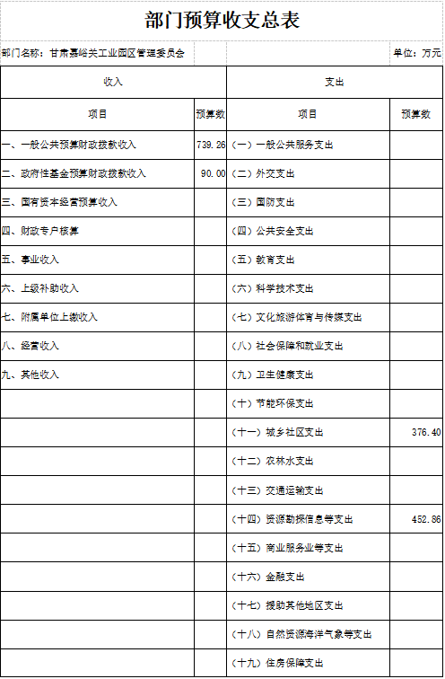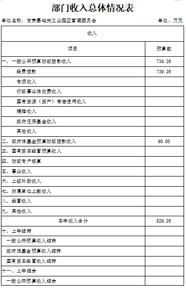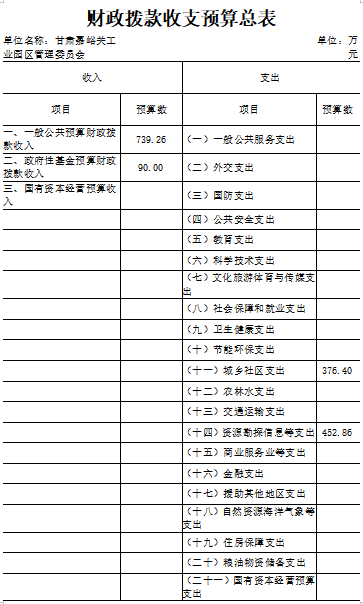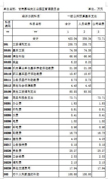 第二部分 甘肃嘉峪关工业园区管理委员2020年度部门预算表