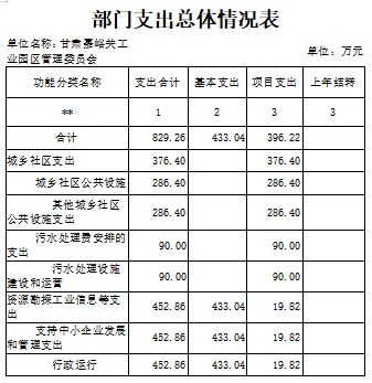 第二部分: 甘肃嘉峪关工业园区管理委员会2020年度部门预算表