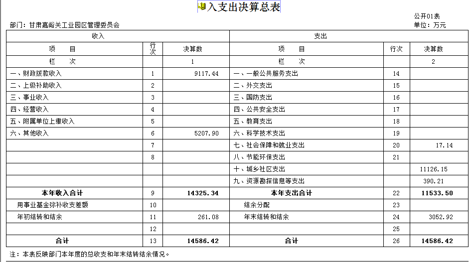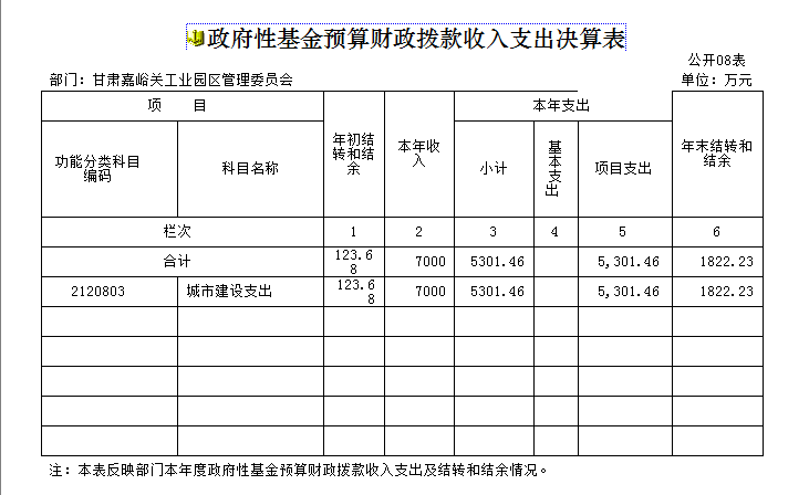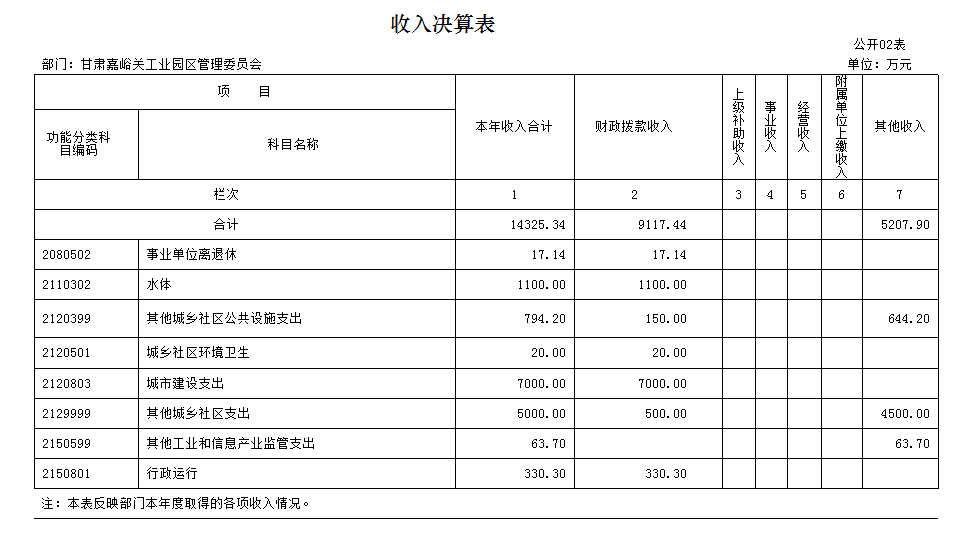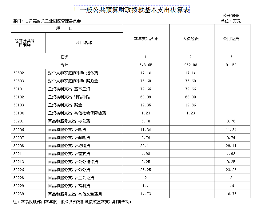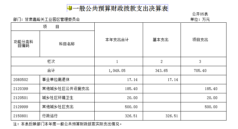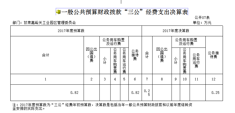甘肃嘉峪关工业园区管理委员会2017年度部门决算