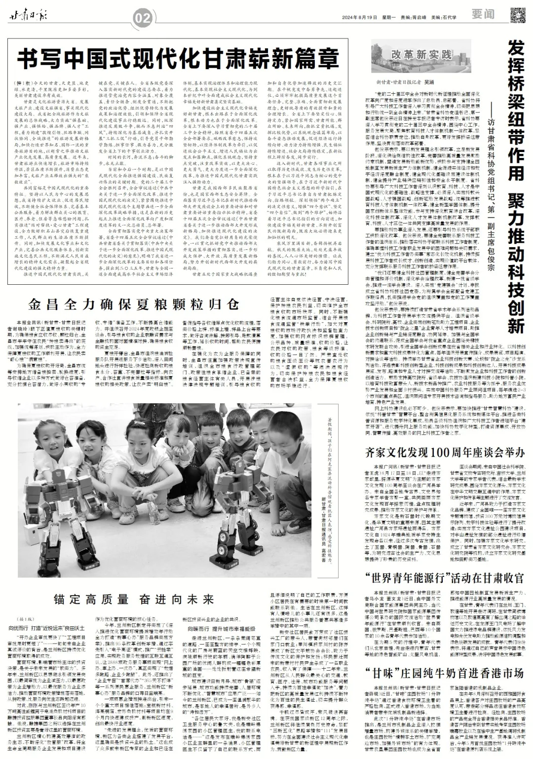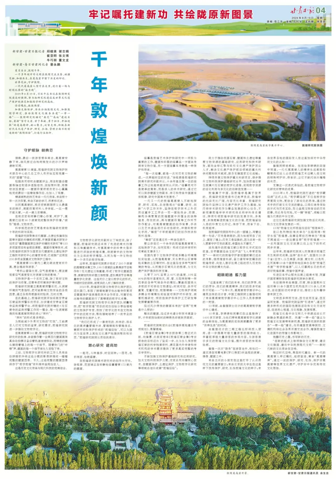 《甘肃日报》8月19日起推出重磅特刊《牢记嘱托建新功 共绘陇原新图景》,沿着总书记的足迹,看陇原大地焕发时代新活力。