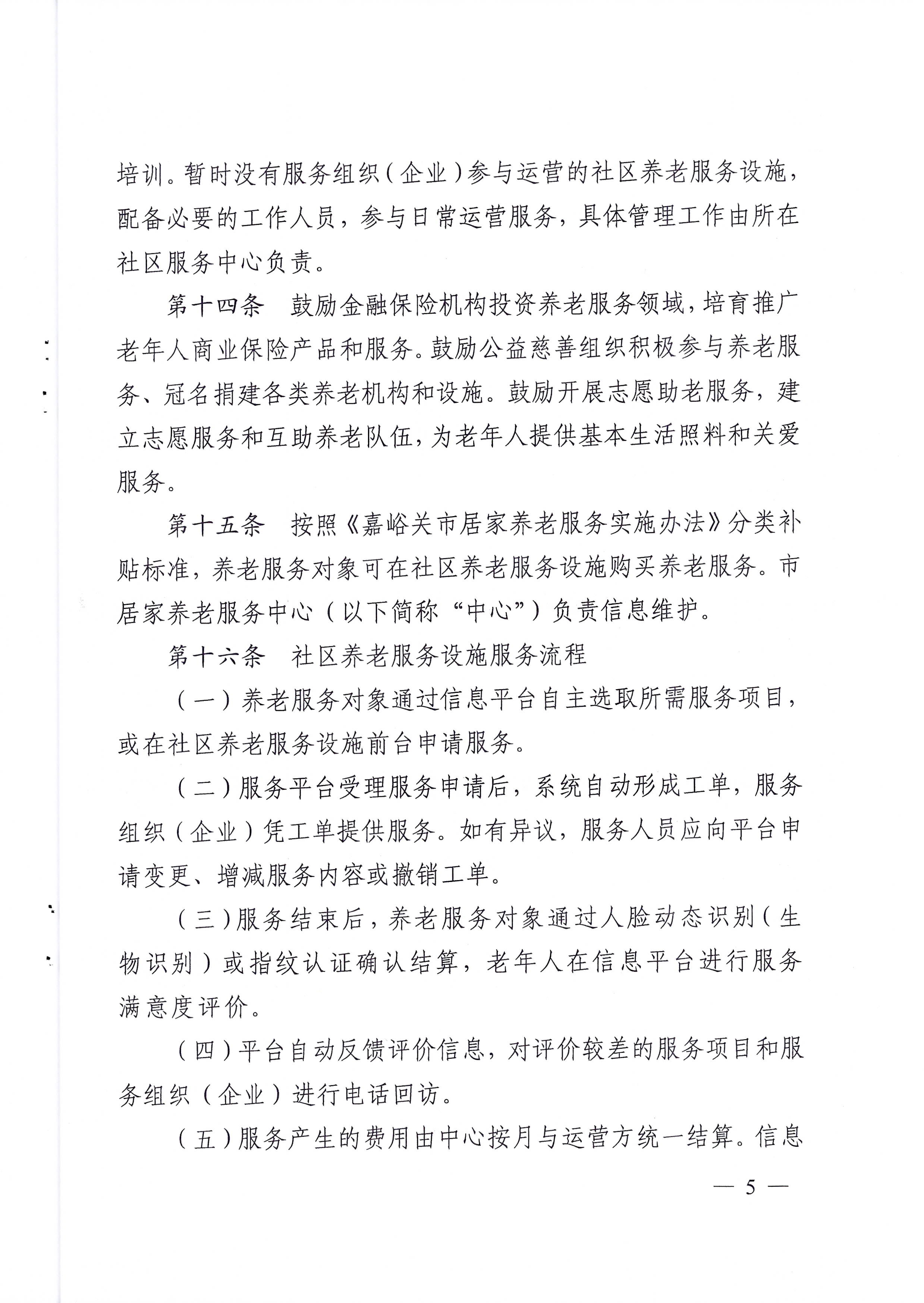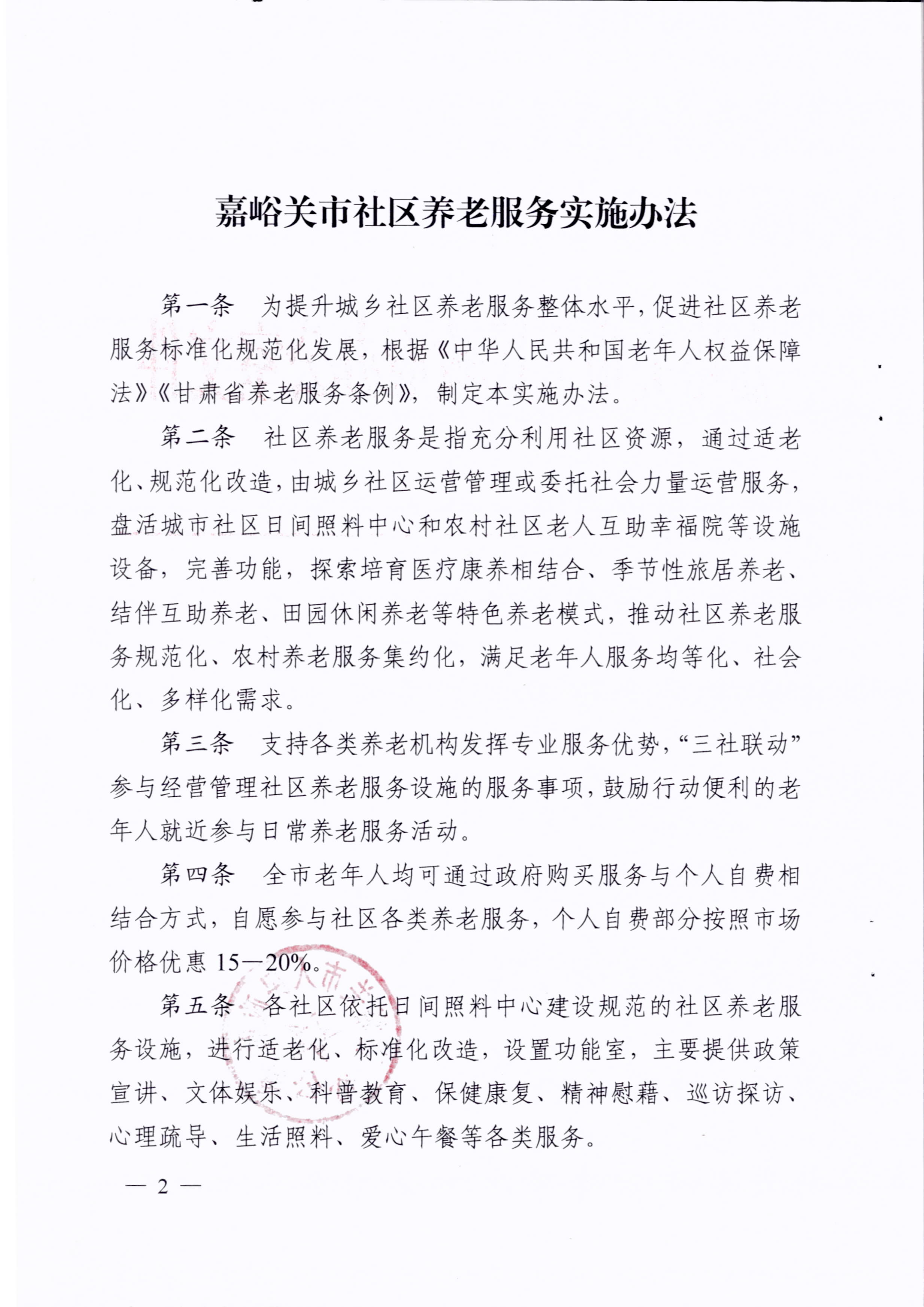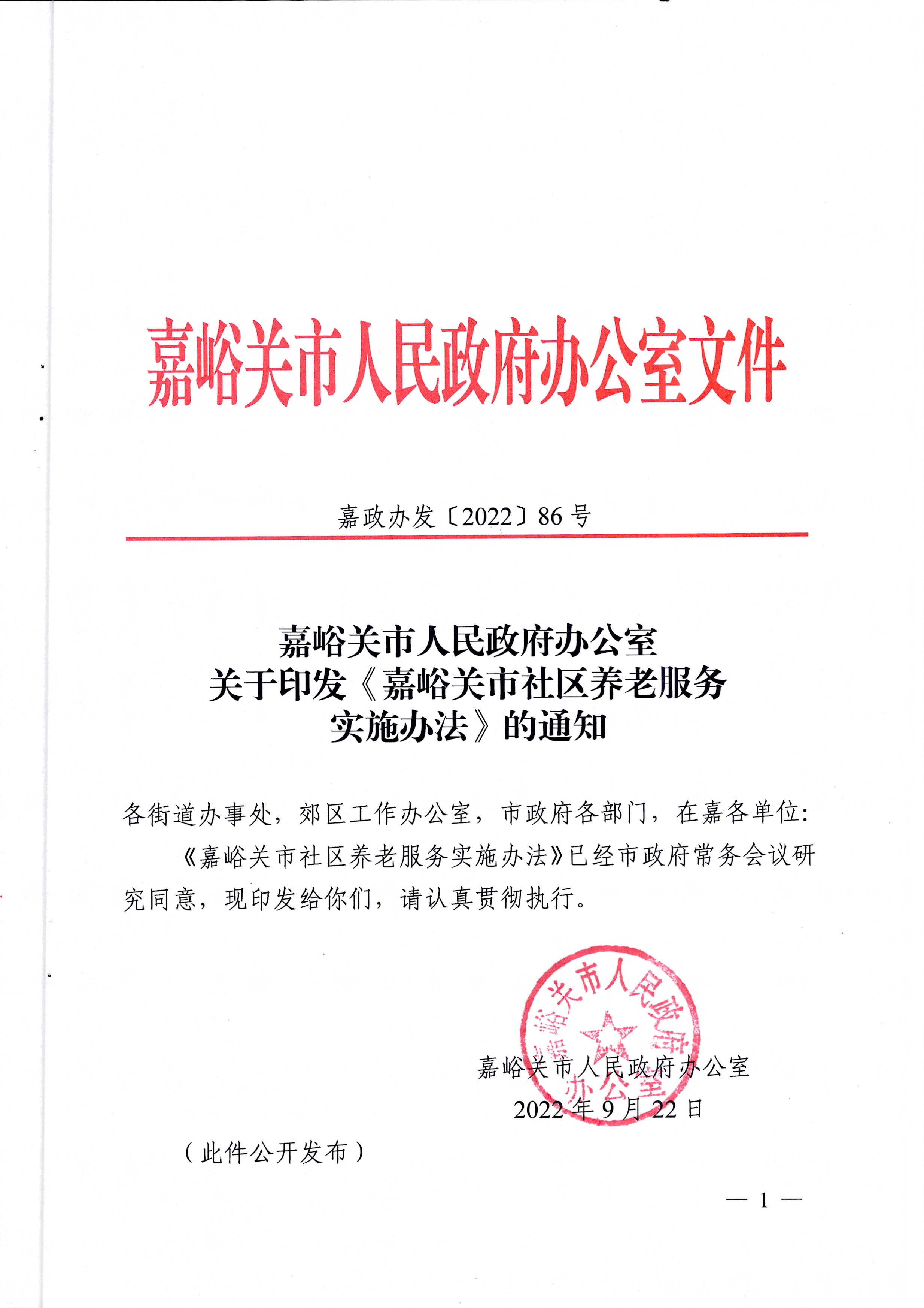 关于印发《嘉峪关市社区养老服务实施办法》的通知