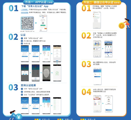 为确保养老保险基金安全,维护养老保险待遇领取人员的切身利益,自2022年1月1日起,全面推行远程自助认证服务新方式,除以往通过“甘肃人社认证”手机APP认证外,还可通过手机查找关注“甘肃省人力资源和社会保障厅”微信公众号,并依次点击服务大厅——生物识别认证进入,输入姓名和身份证号进行登录认证。