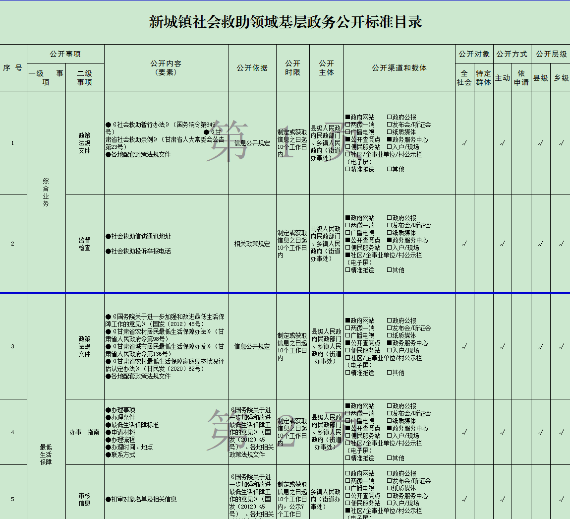 新城镇政务公开事项清单