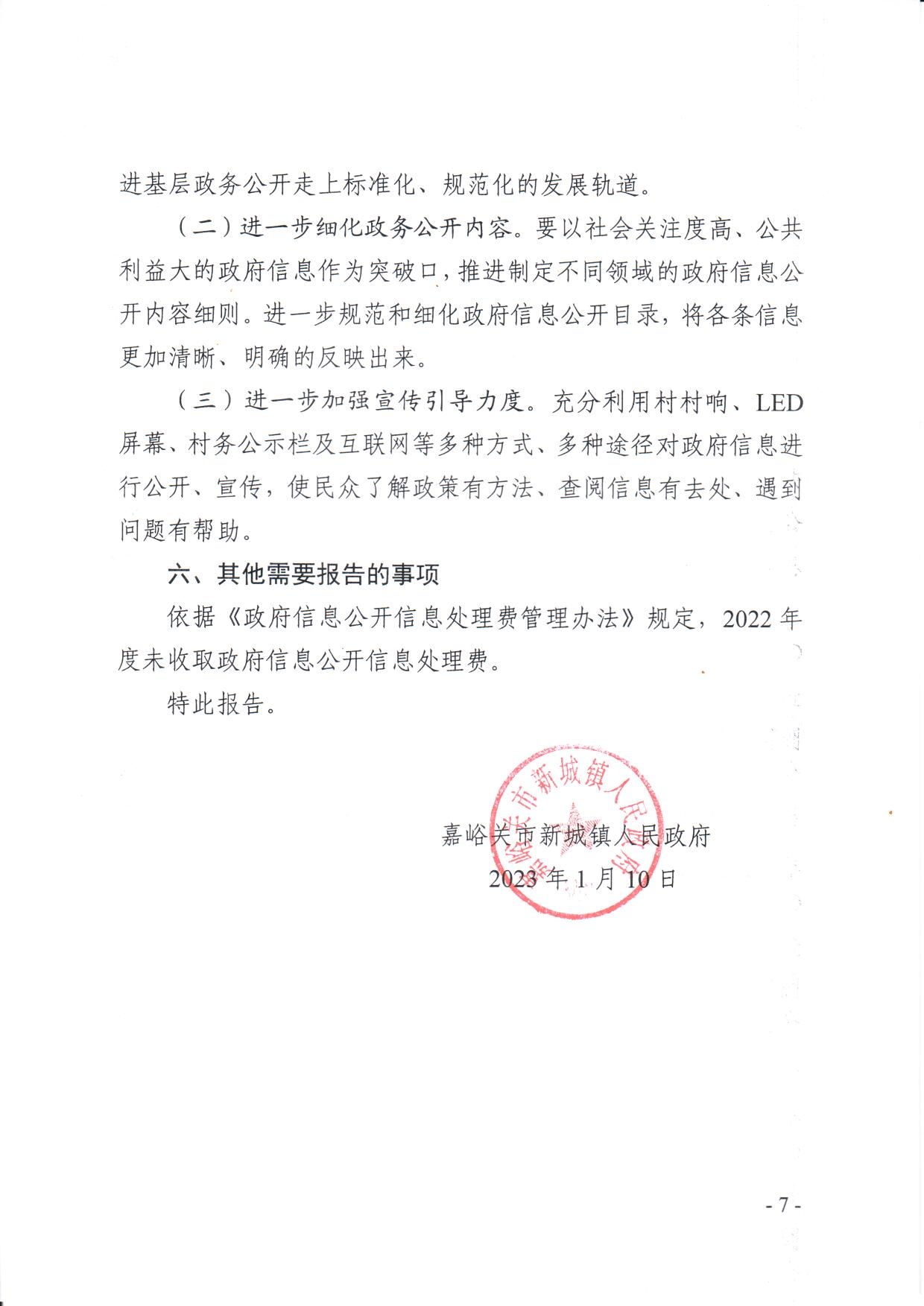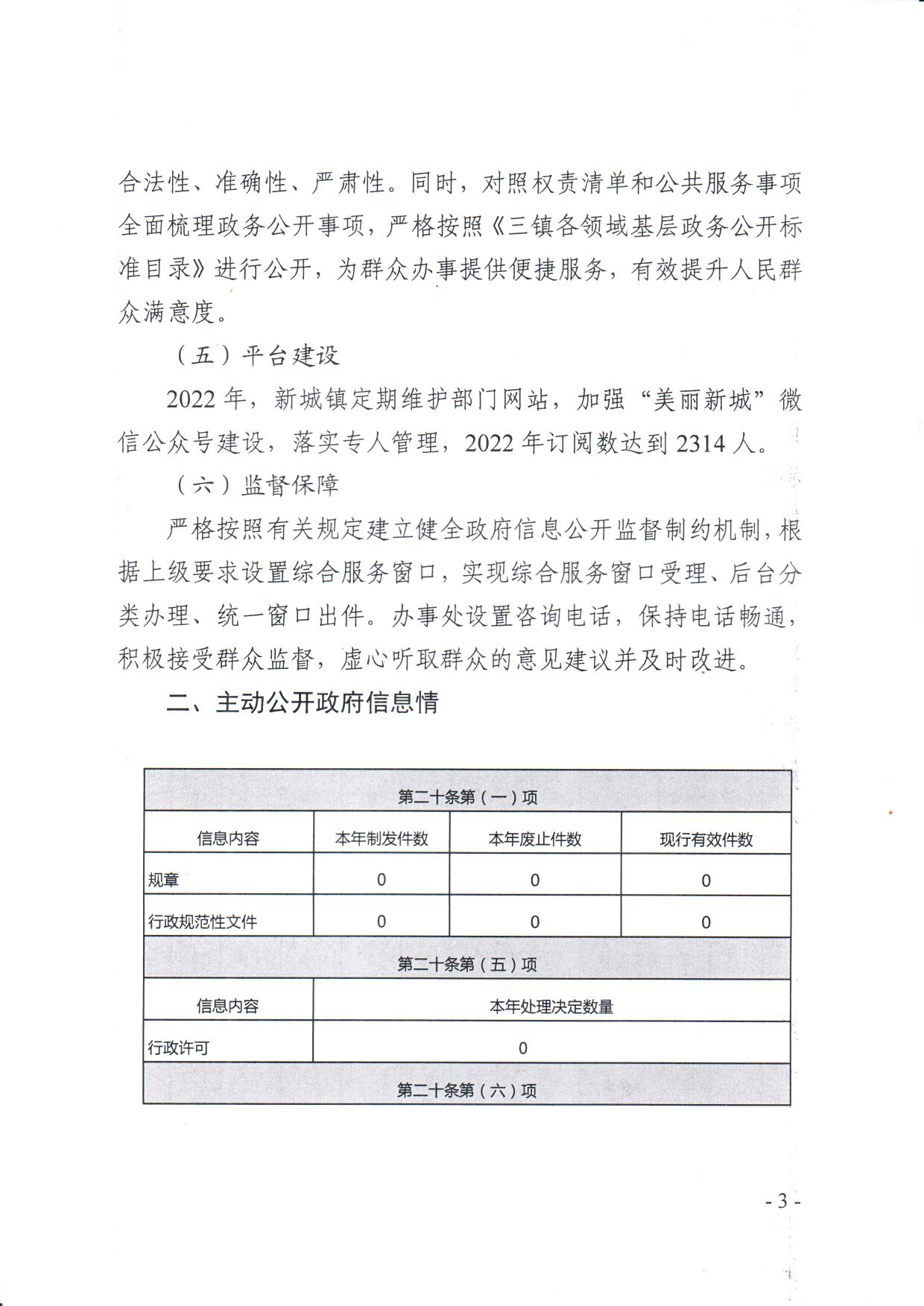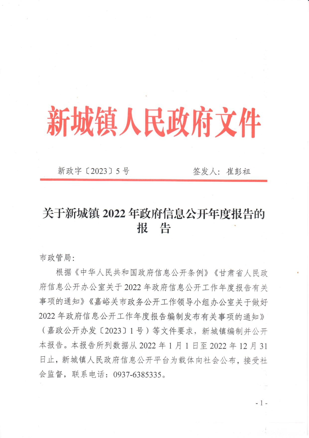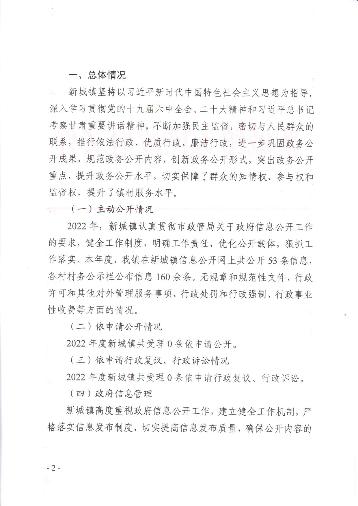 新城镇人民政府关于新城镇2022年政府信息公开年度报告的报告