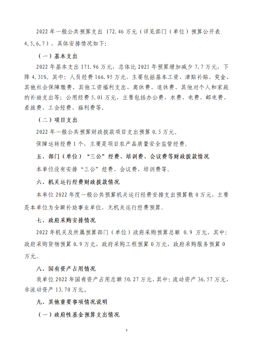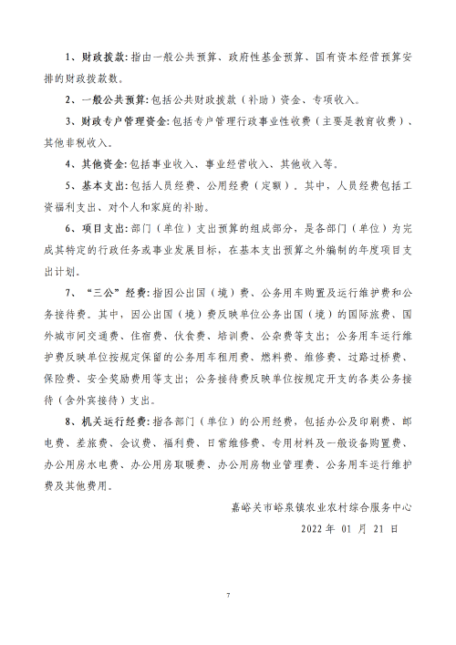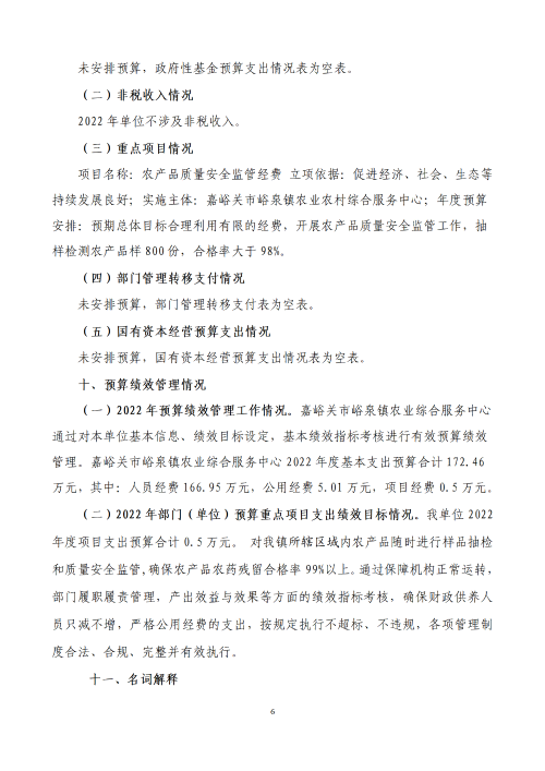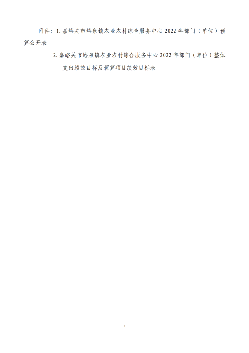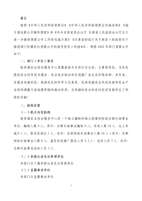嘉峪关市峪泉镇农业综合服务中心2022年部门预算信息公开情况说明