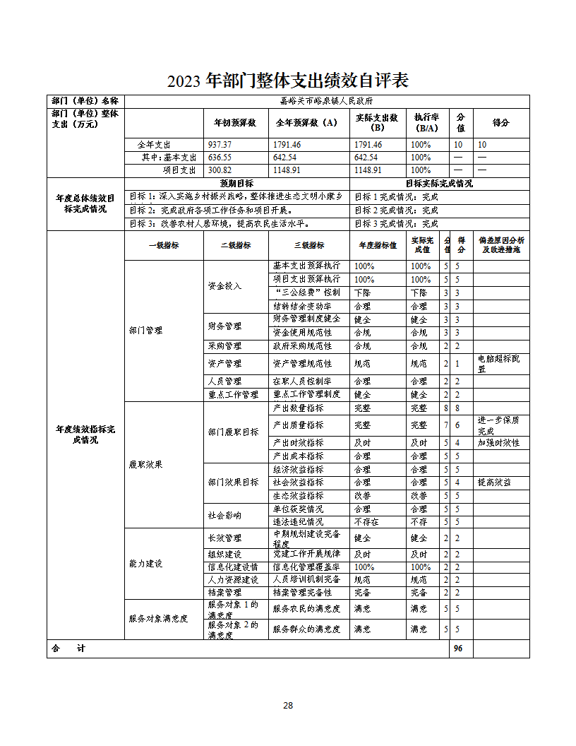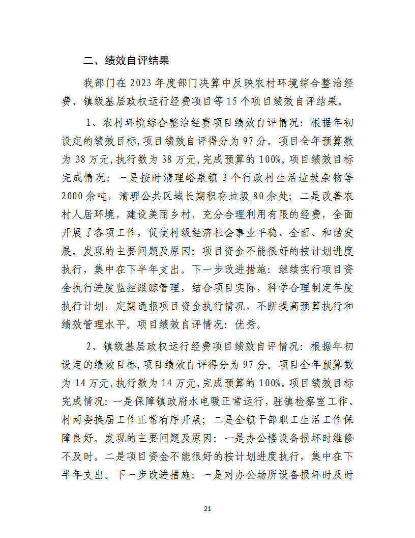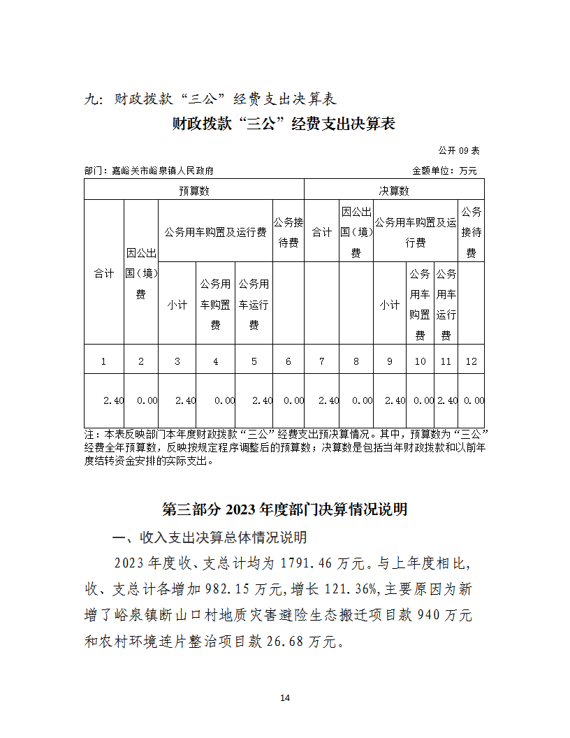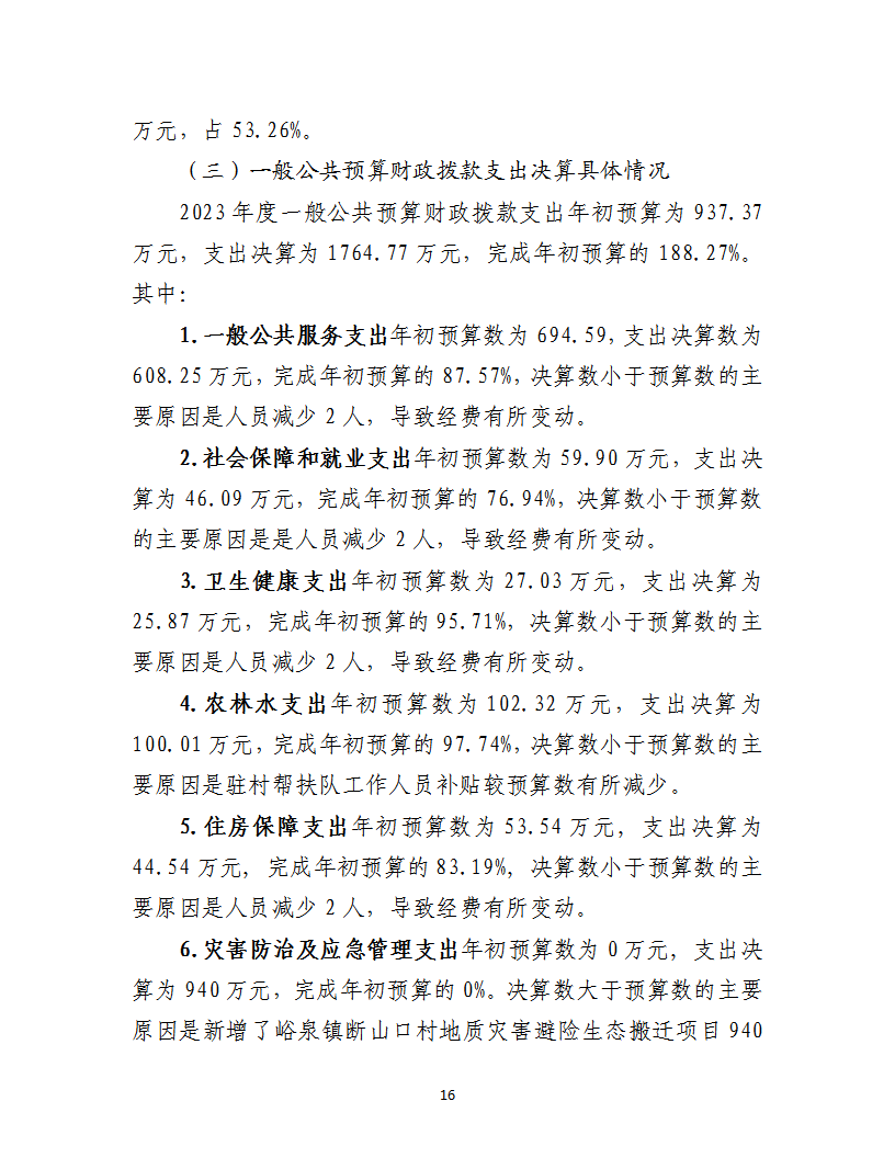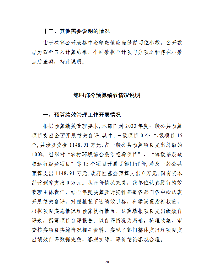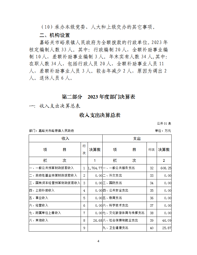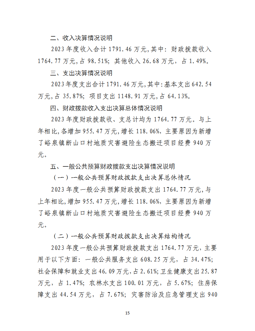 峪泉镇人民政府2023年度部门决算信息公开报告