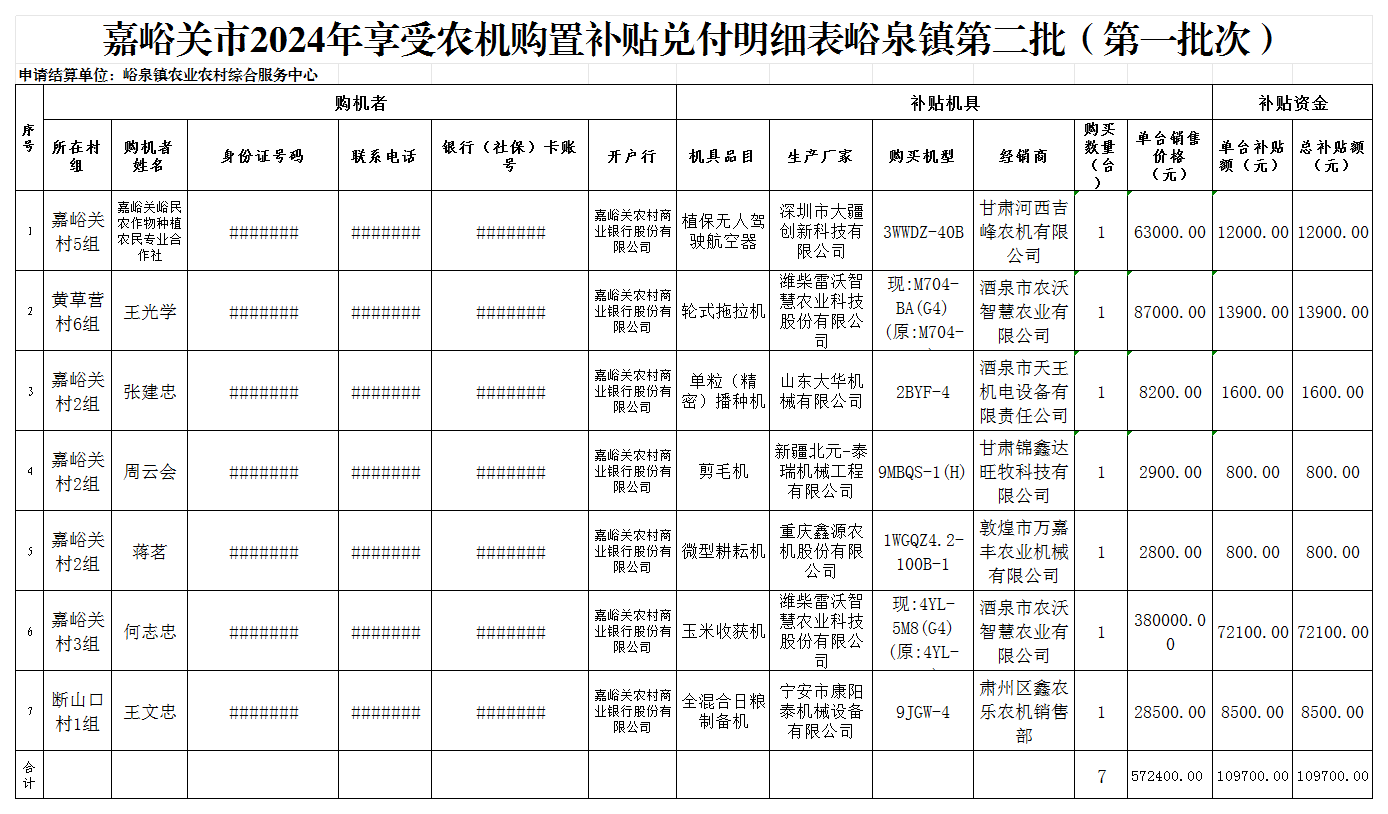 2024年峪泉镇农机购置补贴资金发放情况公示(第二批第一批次)