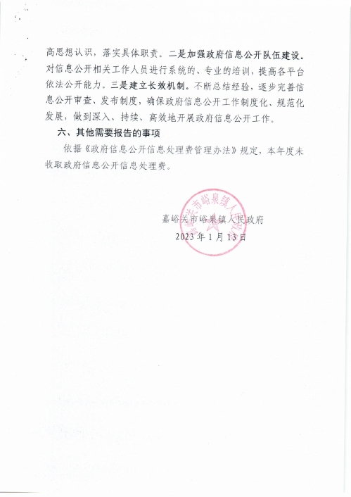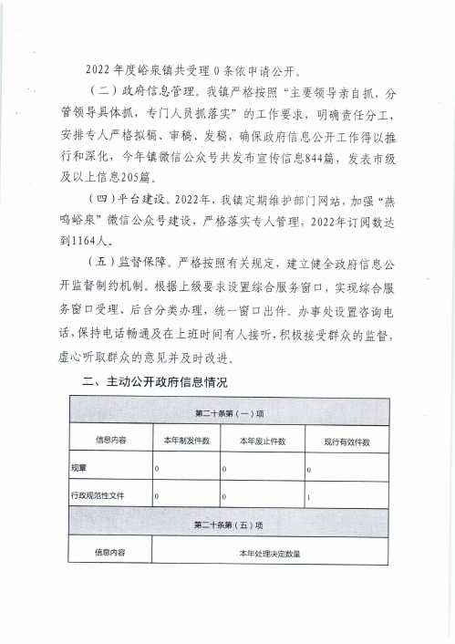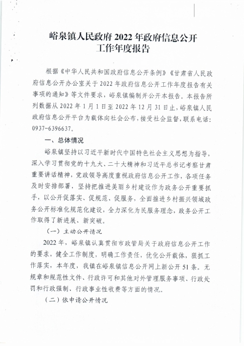 嘉峪关市峪泉镇人民政府2022年政府信息公开工作年度报告