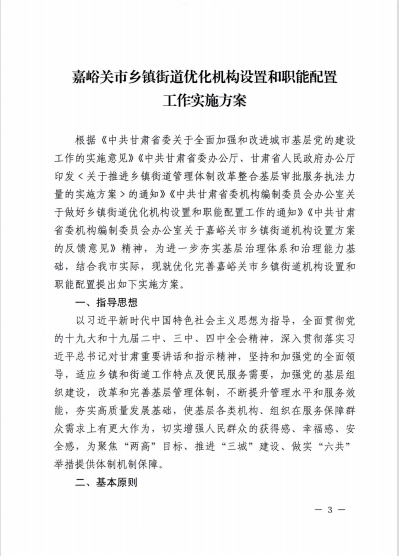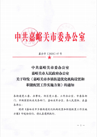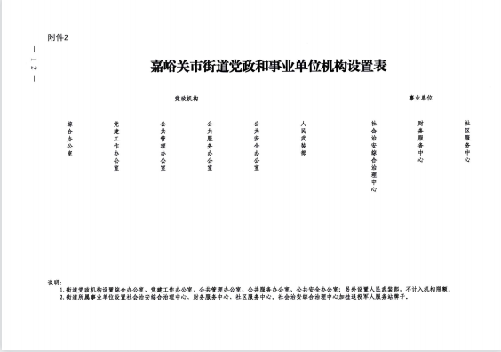 嘉峪关市乡镇街道优化机构设置和职能配置