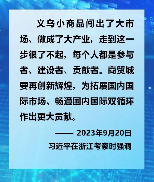 2023年9月20日上午,习近平在浙江义乌国际商贸城考察时,同商户、小企业主代表亲切交流。