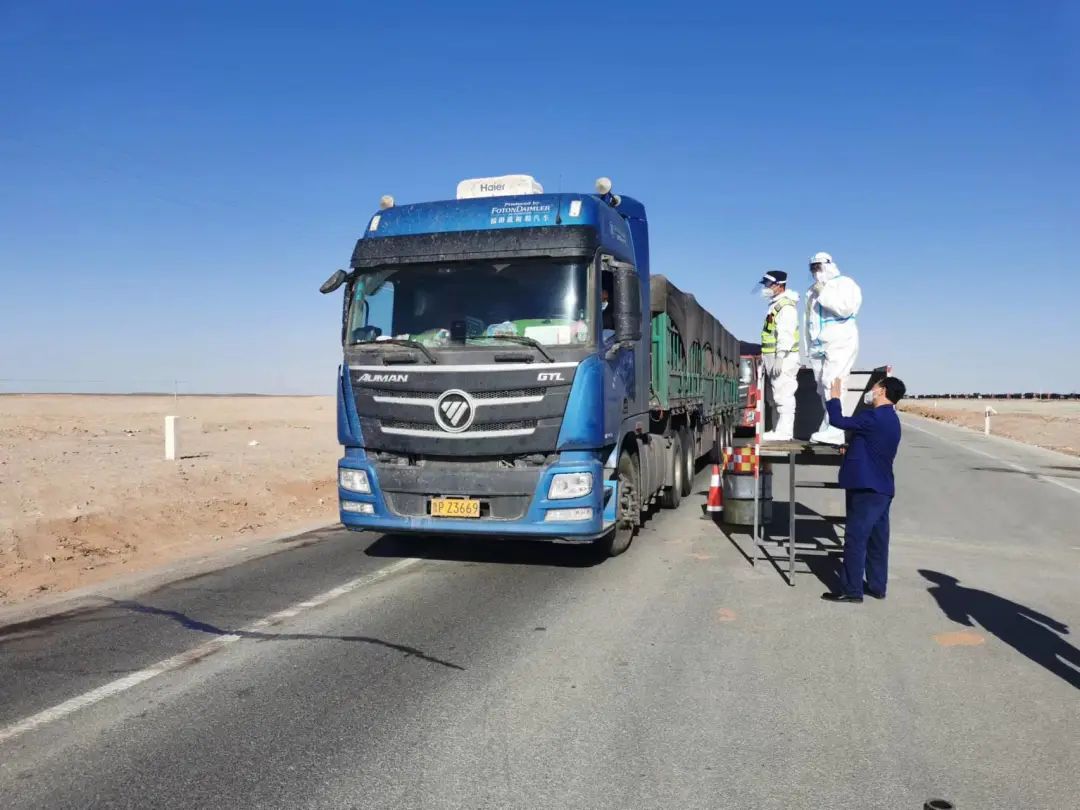 10月以来,出疆入甘车流量增大,甘肃省交通检疫组迅速在酒泉设立前方指挥部,协同新疆开展疫情防控和保通保畅工作,甘新两省区联合作战,双向发力,共同保障甘新货运物流通道畅通有序。