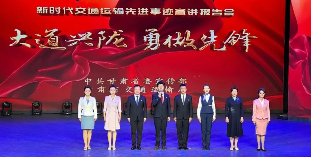 紧接进入了此次报告会的核心环节——“大道兴陇 勇做先锋”先进事迹宣讲,来自交通战线的优秀代表依次登台分享他们的故事:甘肃路桥建设集团有限公司郑岩通过《我是八棵树的孩子》讲述了“八棵树精神”的起源和内涵;甘肃省交通投资管理有限公司王达君用《迎难铸就“大霍公路”》分享了建设大霍公路的艰辛历程;陇南公路事业发展中心王海燕通过《用生命抢通“生命线”》展现了甘肃交通人在困难时刻的忠诚和社会责任感;定西公路事业发展中心张伟用《只因心中有团火》点燃了在场每一位交通人的梦想和信念;甘肃民航机场集团有限公司王菲菲用《小红帮您 一路相伴》体现了创新和服务的重要性;省道路运输事业发展中心刘洁用《抗震救灾 交通先行》阐释了在积石山地震应急处置中甘肃交通人始终坚持“人民至上、生命至上”理念以及不断提升的交通运输应急保障能力;中国交通报驻甘肃记者站马琼晖用《精神如炬 征程如虹》深刻阐述了爱岗敬业的甘肃交通人传承“八棵树精神”在新时代的意义,也激励了当代交通人继承使命而立,为国强而生,面向未来,励精图治。他们的故事,让“八棵树精神”有了更生动的注脚,也让在场的每一位交通人都感受到了甘肃交通人的精神力量。最后活动在嘉峪关公路事业发展中心表演的大合唱《世界赠予我》《八棵树之恋》中拉下帷幕。